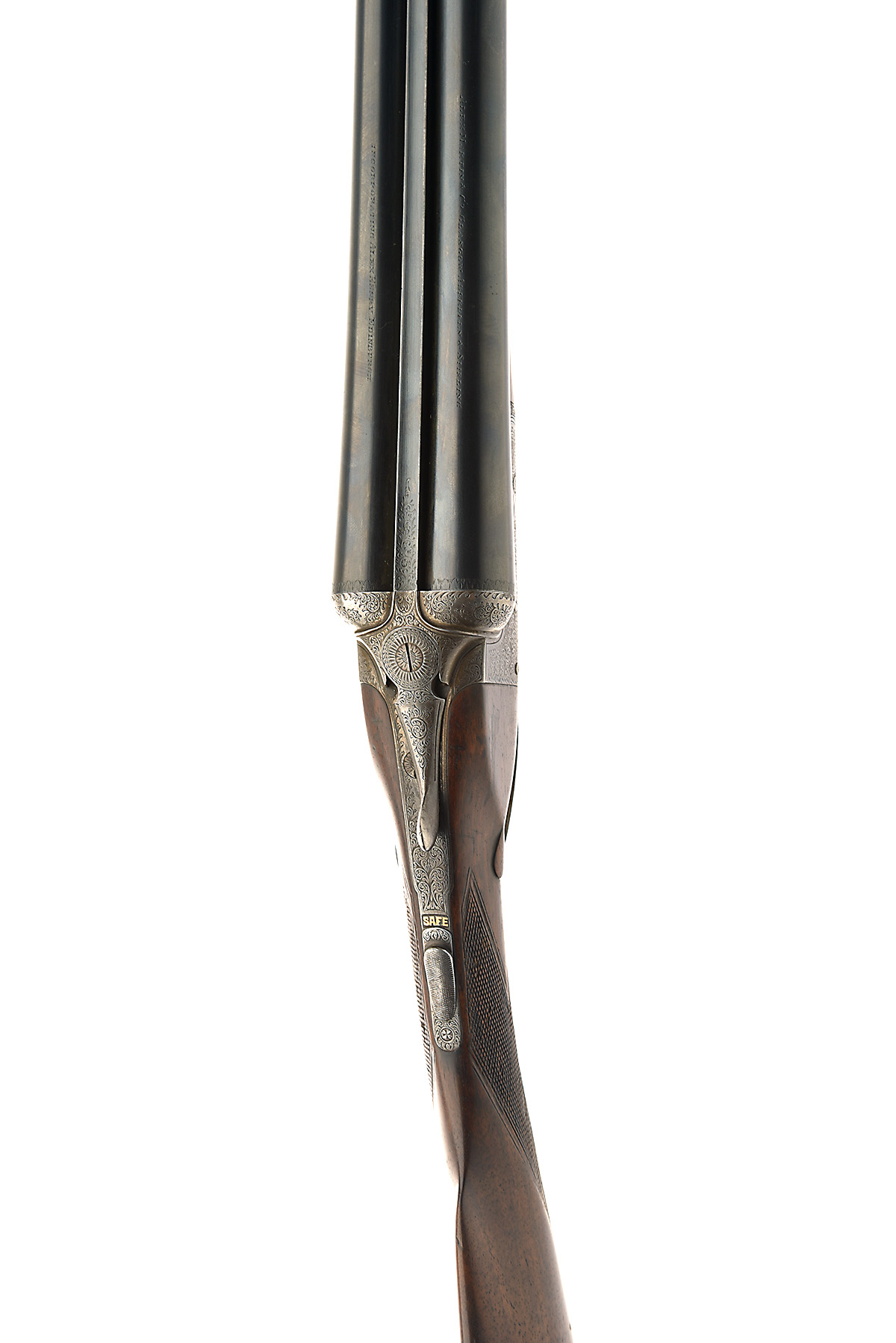 ALEX MARTIN 12-BORE BOXLOCK EJECTOR, serial no. 6808 / 8089, dated 1937, 28in. nitro barrels, tubes engraved 'ALEX MARTIN & CO. GLASGOW. ABERDEEN & STIRLING. INCORPORATING ALEX HENRY EDINBURGH.', 2 1/2in. chambers, bored approx. imp. cyl. and 1/2 choke, treble-grip action with hidden third bite, automatic safety with gold-inlaid 'SAFE' detail, border and acanthus scroll engraving surrounding the makers name within a scrolling banner, 14in. stock cast toward central vision, weight 6lb. 2oz.