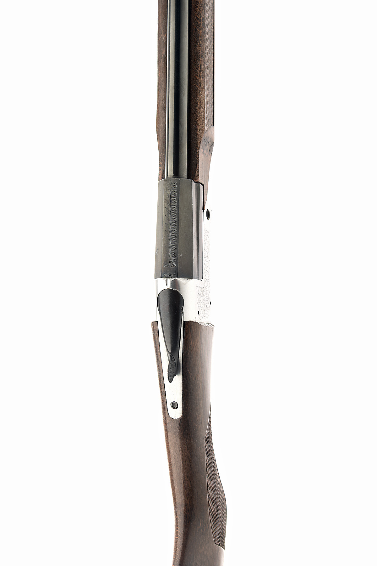 F. PEDRETTI .410 (3IN.) SINGLE-BARRELLED LEVER-COCKING FOLDING HAMMERLESS SHOTGUN, serial no. 0215247, for 1988, 27 3/4in. nitro barrel, 3in. chamber, bored approx. 1/2 choke, manual push-button safety, alloy action with acanthus scroll engraving, 12 1/2in. semi-pistolgrip stock including rubber recoil pad