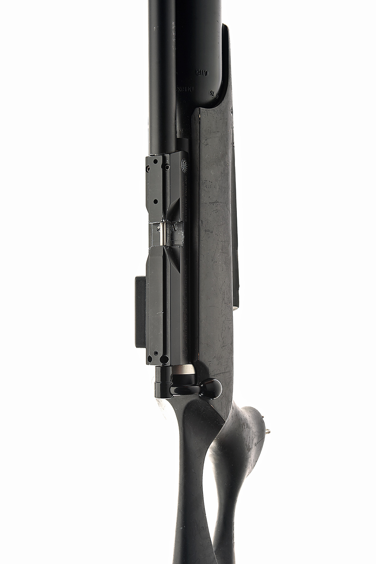 AN F.A.C. .20 RATED PRE-CHARGED PNEUMATIC AIR-RIFLE, SIGNED DAYSTATE 'MODEL AIRWOLF TACTICAL', serial no. TT0143, 21 1/2in. unsighted shrouded barrel with carbon fibre sound moderator, breech with rotary magazine (present), switch to rear for electronic register, charger included, rubberised skeletal pistolgrip halfstock, 14 1/2in. pull including ventilated rubber recoil pad, in a green canvas slip
