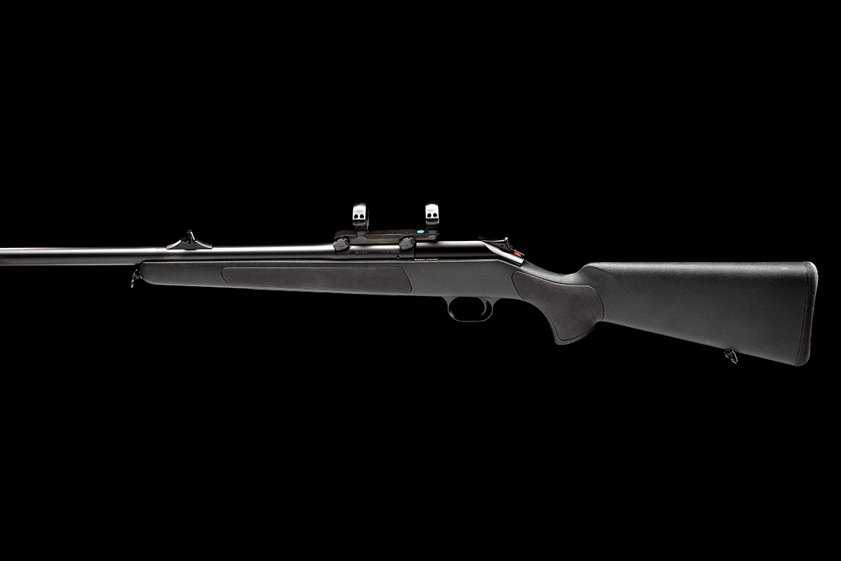 dated 2006, 24 3/4in. nitro barrel numbered 9/146084, with ramp-mounted blade fore-sight, open rear-sights, breech end fitted with quickly-detachable Blaser mount with 30mm scope rings, dark green synthetic stock with black rubber grip panels, palm swell, sling swivels, 14 1/4in. pull including 1/2in. rubber recoil pad, weight 8lb. 13oz.
