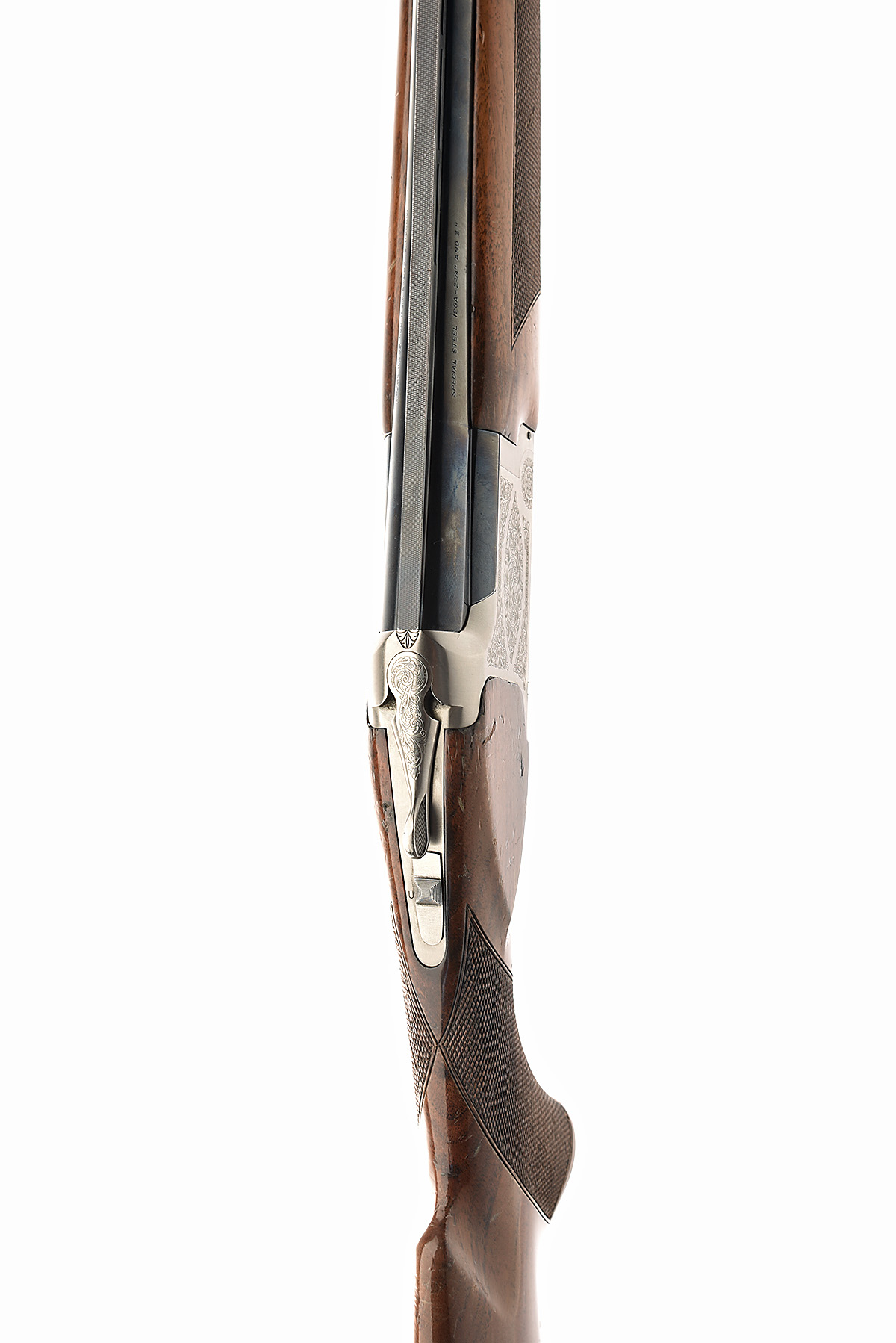 MIROKU 12-BORE (3IN.) 'MK-60 SPORT' SINGLE-TRIGGER OVER AND UNDER EJECTOR, serial no. 74946MP, dated 2008, 30in. nitro barrels with 7mm ventilated matt top-rib, 3in. chambers, bored approx. 1/4 and 3/4 choke, hold-open toplever, manual safety with integral barrel selector switch, acanthus scroll engraving, 14 3/4in. pistolgrip stock including buttplate, weight 7lb. 12oz.