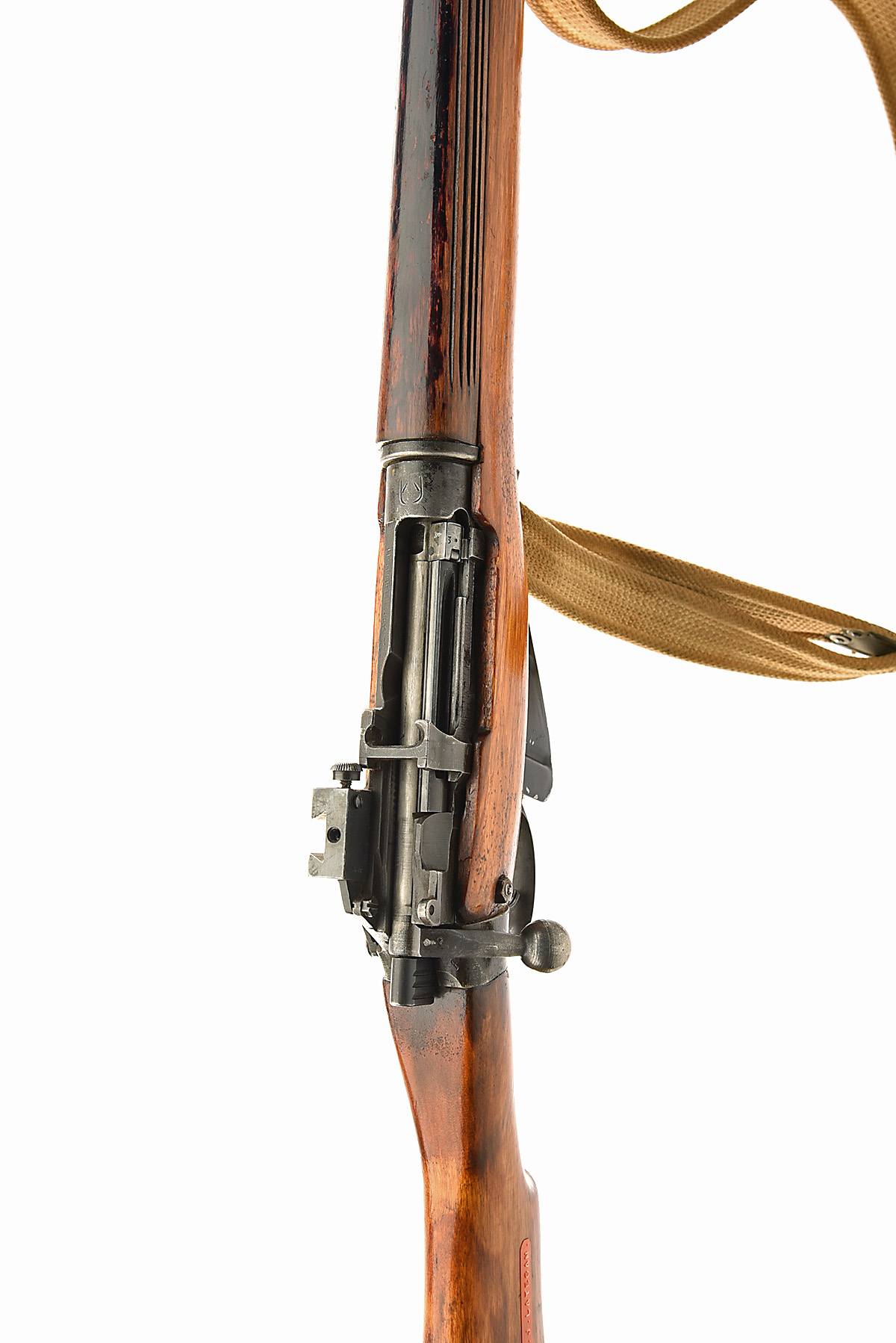 ** SAVAGE .303 'NO 4 MK I*' BOLT-MAGAZINE SERVICE RIFLE, serial no. 2205489S, circa 1942, 25in. nitro barrel, ramp-mounted fore-sight, fold rear battle-sight missing, manual safety, detachable magazine missing, full-length stock, aluminium butt plate with trap door, canvas sling