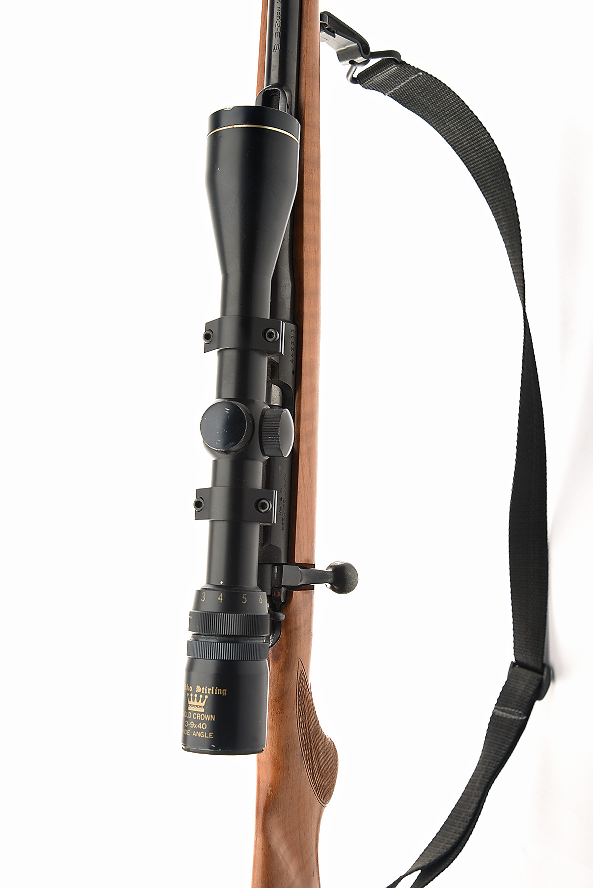BRNO .22 L.R. 'MOD 2-E' BOLT-MAGAZINE SPORTING RIFLE, serial no. 442313, circa 1991, 24 3/4in. nitro barrel, threaded for sound moderator, ramp-mounted fore-sight, rear-sight missing, fitted with a Nikko Stirling 3-9x40 telescopic sight, manual safety, detachable magazine, pistolgrip stock, canvas sling