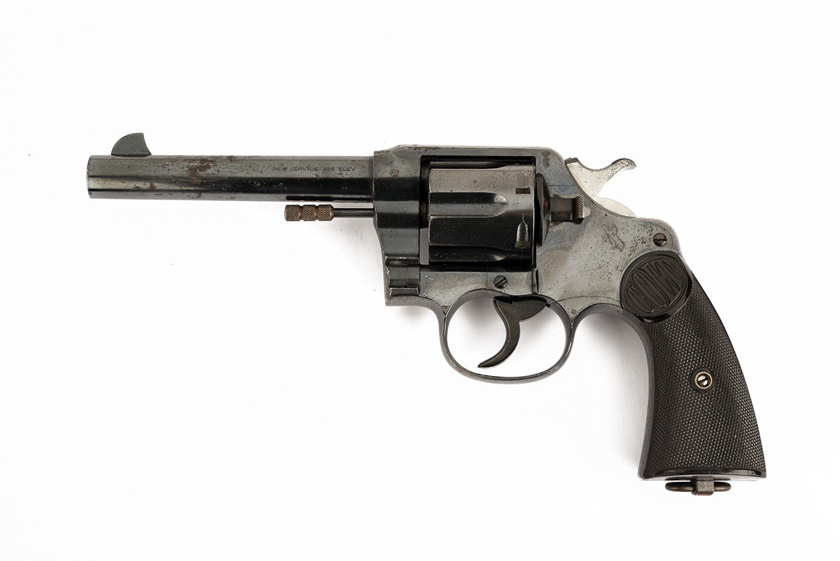 A COLT .455 NEW SERVICE REVOLVER, serial no. 110033, for 1916, with 5 1/2in. blued barrel signed on two lines and with patents to 1905, blued solid frame, swing-out fluted cylinder, polished sides to hammer and blued trigger, double action mechanism and chequered hard rubber grips, the whole retaining the majority of its original finish