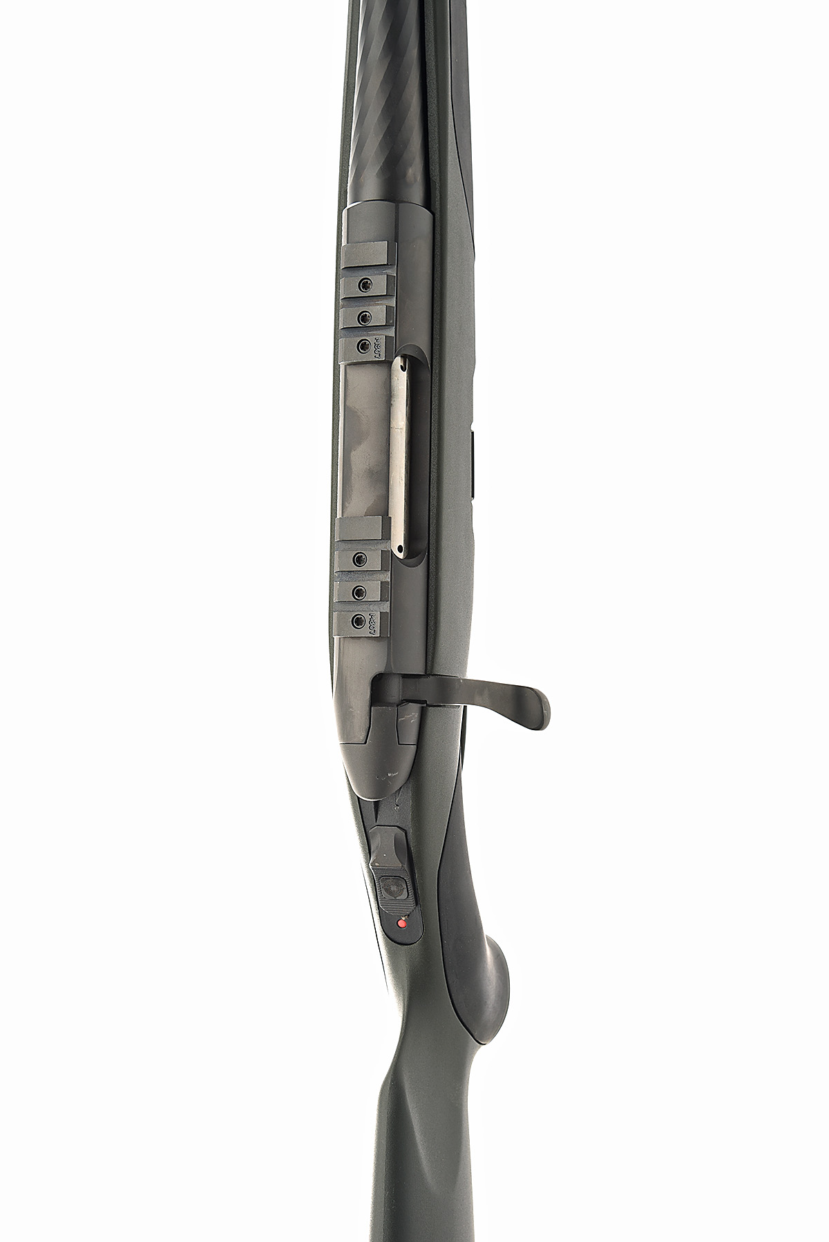 circa 2016, 25 1/2in. unsighted fluted nitro barrel, scope rail, manual tang safety, detachable magazine, green and black synthetic pistolgrip stock with recoil pad and sling eyes