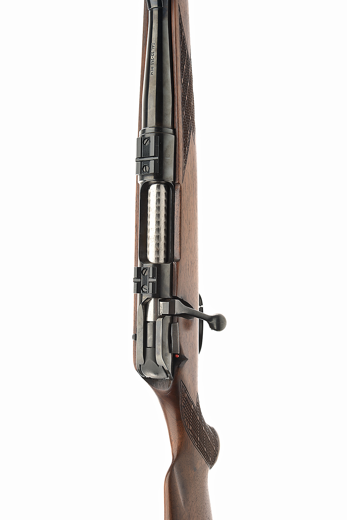 ** KRIEGESKORTE & CO. .22-250 REM BOLT-MAGAZINE STUTZEN SPORTING RIFLE, serial no. 128536, circa 1974, 22in. nitro barrel, ramp-mounted fore-sight (bead missing), rear-sight missing, scope rail, manual safety, detachable magazine, set triggers, figured pistolgrip stock with ventilated recoil pad and cheekpiece, sling swivels