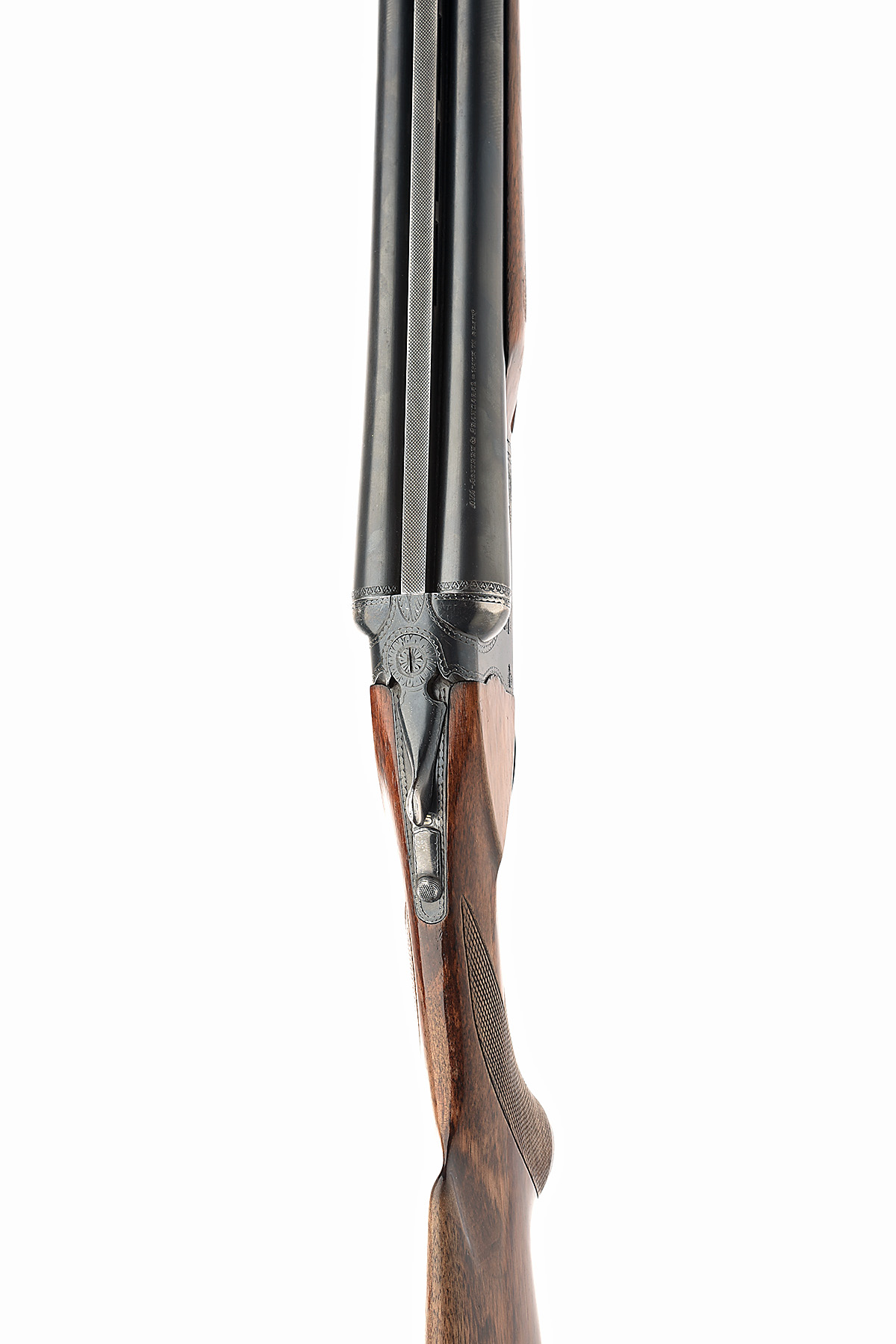 AYA 12-BORE 'MODEL MATADOR III' SINGLE-TRIGGER BOXLOCK EJECTOR, serial no. 449778, circa 1973, 28in. nitro barrels with ventilated matt rib, 2 3/4in. chambers, bored approx. 1/4 and 1/2 choke, automatic safety with gold-inlaid 'S' detail, removable striker discs, scoop-backed action with border engraving, blacked finish, single-trigger with barrel-selector switch, 14 1/4in. pistolgrip stock including trademark buttplate, beavertail fore-end, weight 7lb. 2oz.