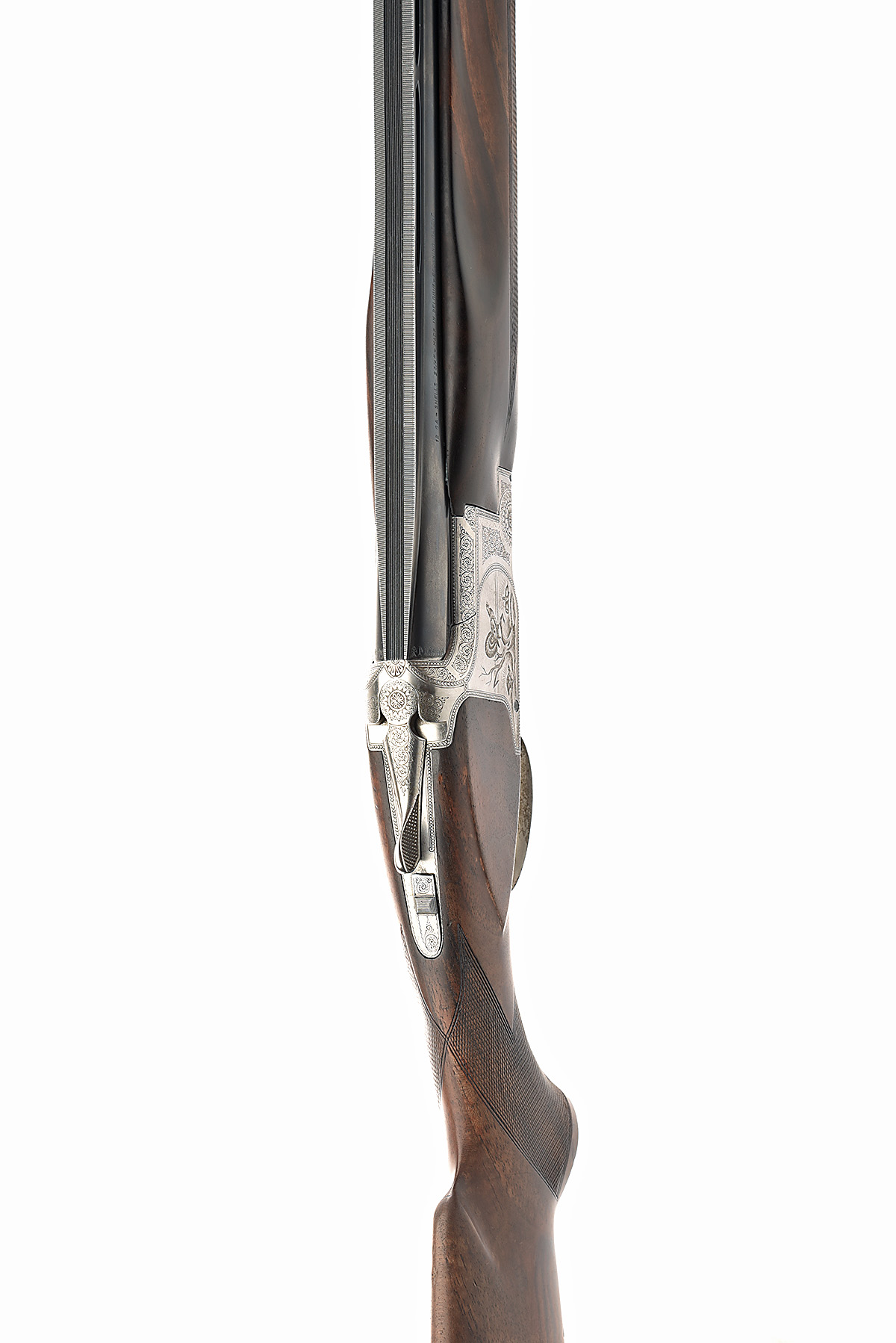 FABRIQUE NATIONALE 12-BORE 'B2' SINGLE-TRIGGER OVER AND UNDER EJECTOR, serial no. 52994 s75, for 1975, 28 1/4in. nitro reproved barrels with broad 16mm ventilated matt top-rib (mid-rib loose towards breech), 2 3/4in. chambers, multichokes (no spares), hold-open toplever, manual safety with integral barrel selector switch, gold-washed single trigger, beaded border and partial acanthus scroll engraving surrounding scenes of pheasant and capercaillie, 13 1/4in. pistolgrip stock including 1in. ventilated rubber recoil pad, weight 7lb. 10oz.
