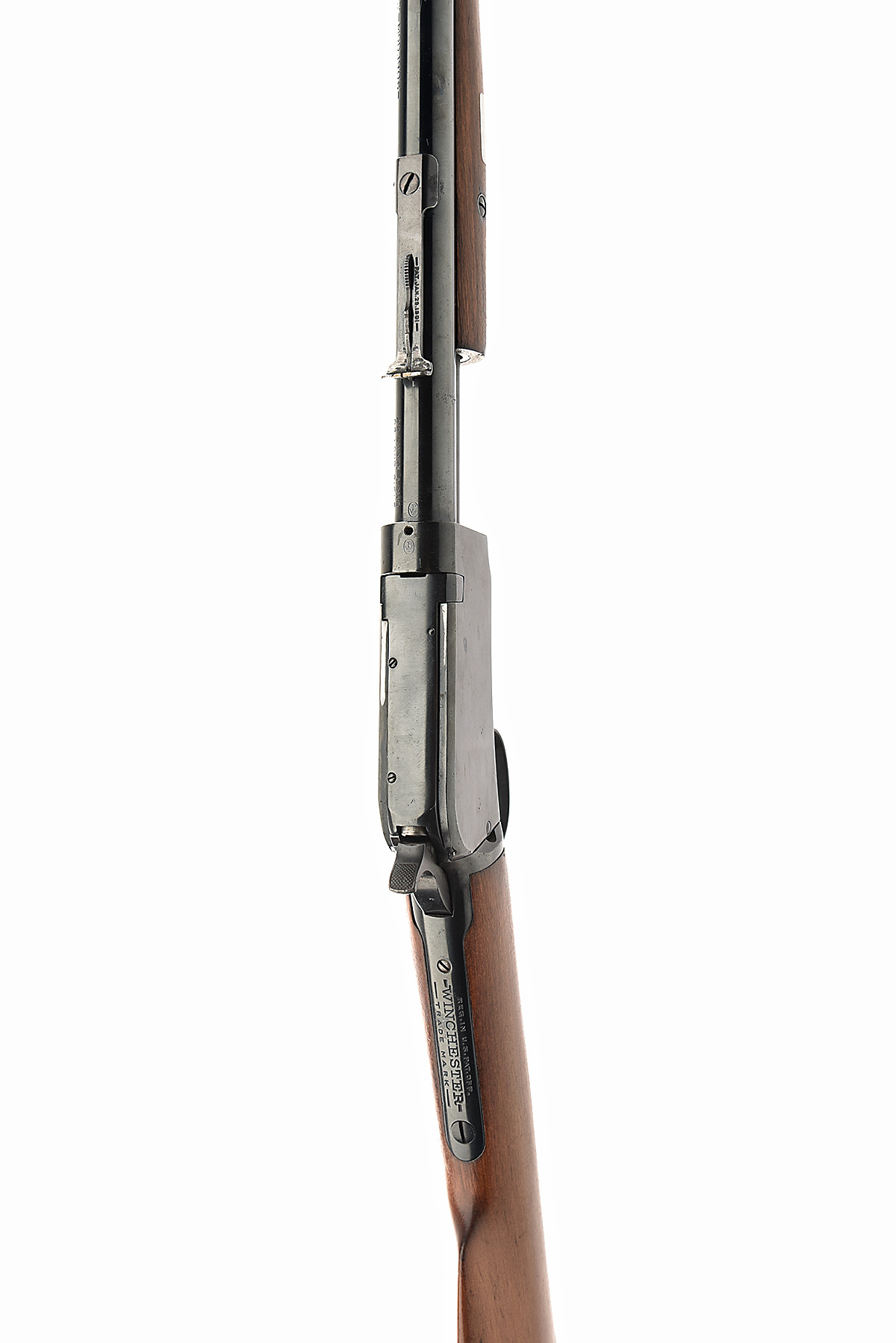 circa 1910, 20in., nitro barrel, bead fore-sight, leaf rear-sight, half-cock safety, tubular magazine, straight stock