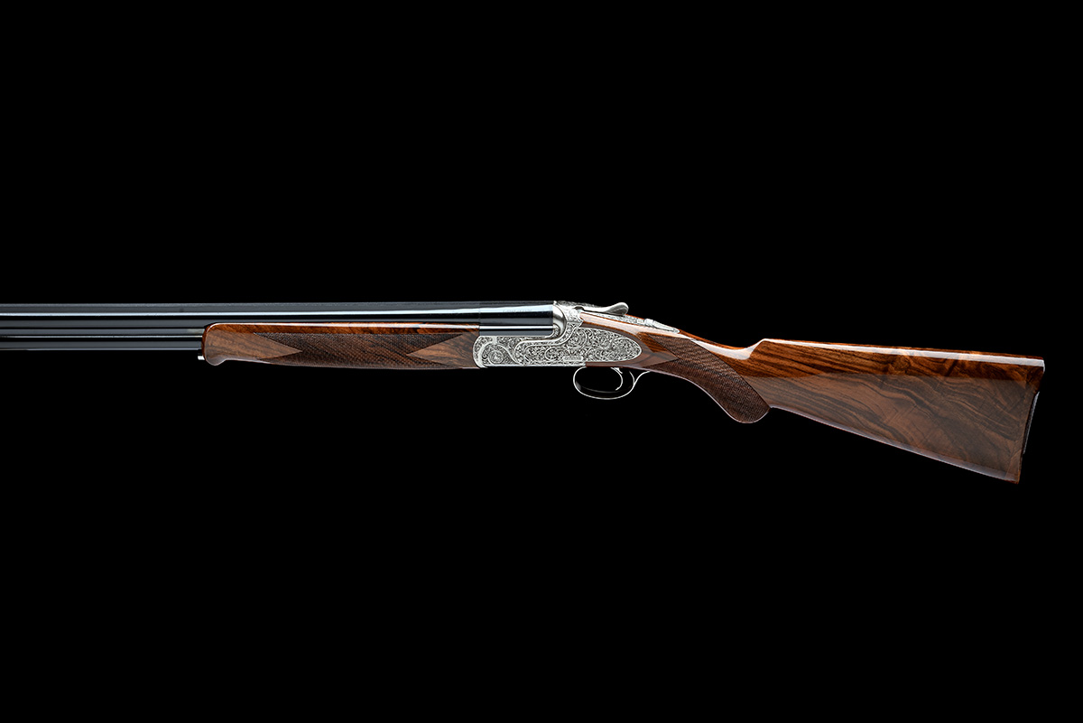 for 2016, 31 7/8in. (81cm) nitro barrels with solid tapered matt top-rib, 3in. chambers, multichokes (with spares), hold-open toplever, manual safety with integral barrel selector switch, bold ribbon and scroll engraving on a matted background, the triggerplate signed 'Bottega C Giovanelli', bright finish, 14 7/8in. figured semi-pistolgrip stock, weight 6lb. 13oz., in its universal case with paperwork