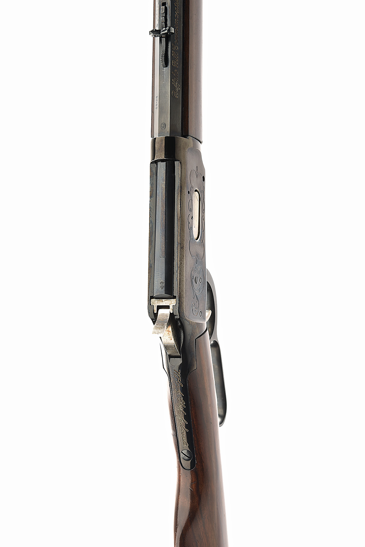 WINCHESTER .30-30 MODEL '94 "BUFFALO BILL" COMMEMORATIVE', serial no. WC2702, circa 1968, with 20in. nitro-proved octagonal barrel, dove-tailed blade fore-sight, buckhorn rear-sight, blued receiver engraved with open scrolls and featuring the legend 'BUFFALO BILL' in script on the left, straight stock with inlaid commemorative coin, silver-plated saddle ring, butt-plate, trigger, hammer and fore-end cap, full length under-barrel magazine