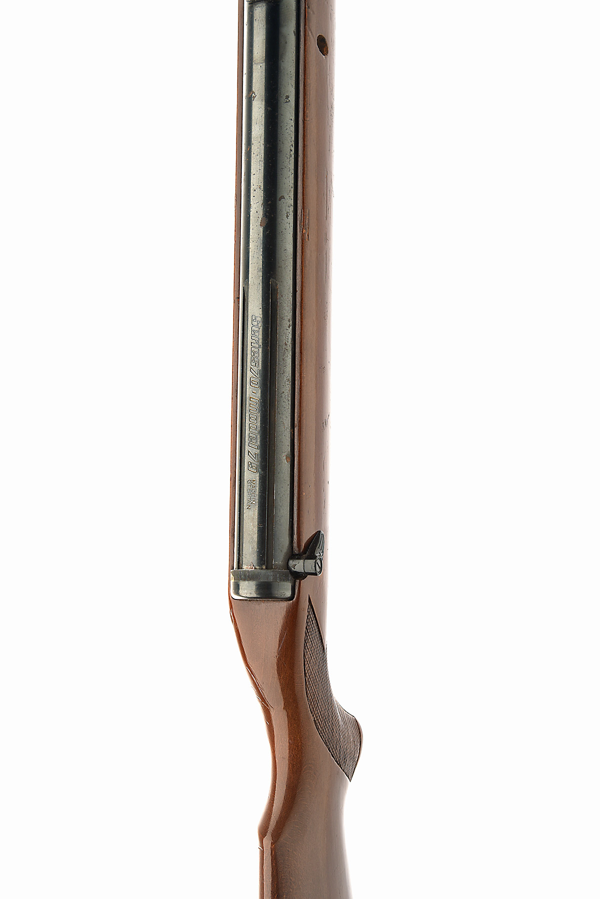 A DIANA SERIES 70 MODEL G79 .22 BREAK-BARREL AIR-RIFLE, no visible serial number, with 17 1/2in. barrel, air-chamber with machined rails for telescopic sight, side safe and beech half-stock, no sights, light wear to finish