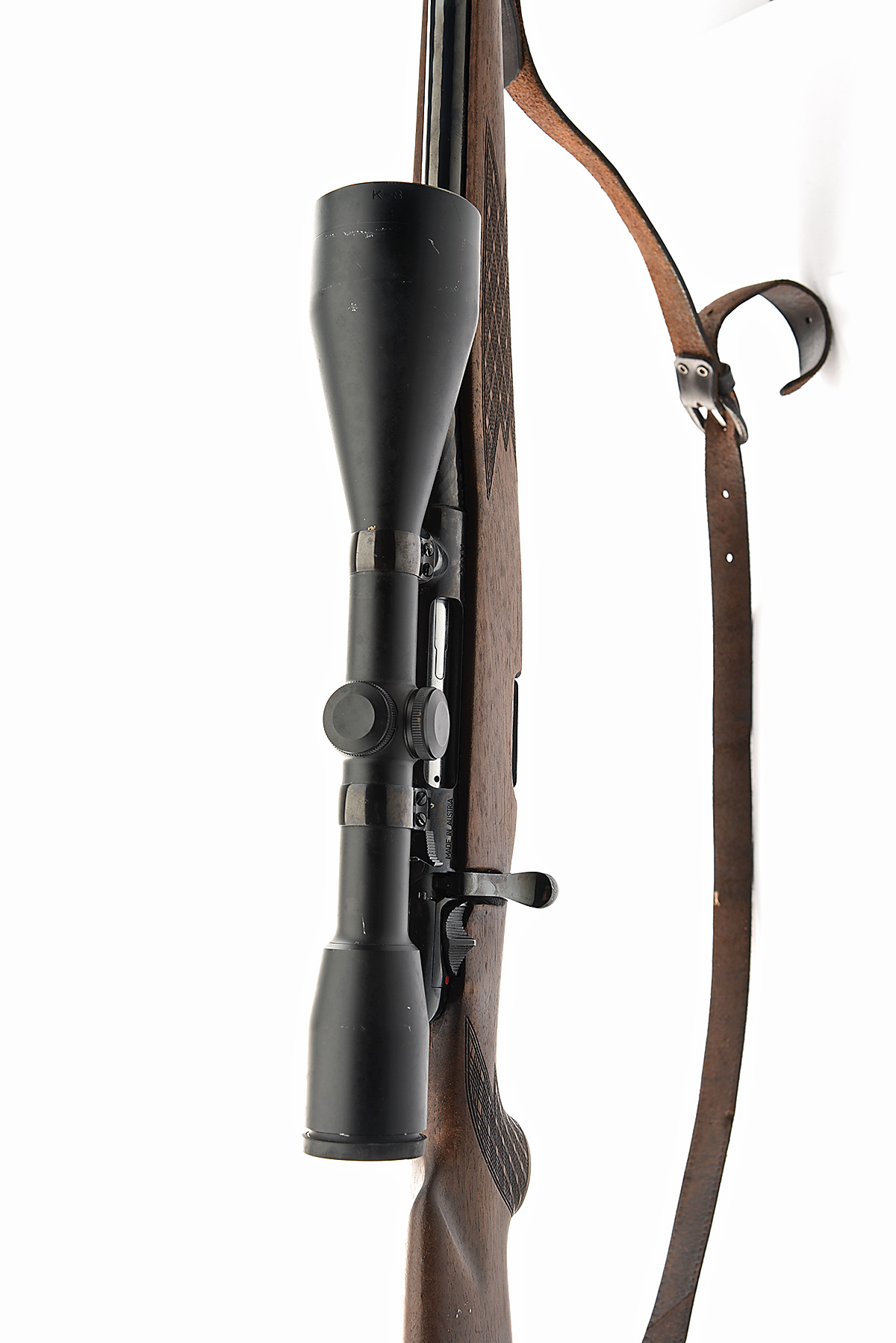 STEYR-DAIMLER-PUCH .243 WIN 'MANNLICHER MOD L' BOLT-MAGAZINE SPORTING RIFLE, serial no. 63391, circa 1975, 23 3/4in. fluted nitro barrel, ramp-mounted bead fore-sight, leaf rear-sight, fitted with a Weaver Classic K-8 telescopic sight, turn-down bolt, manual safety, detachable magazine, figured pistolgrip stock, leather sling