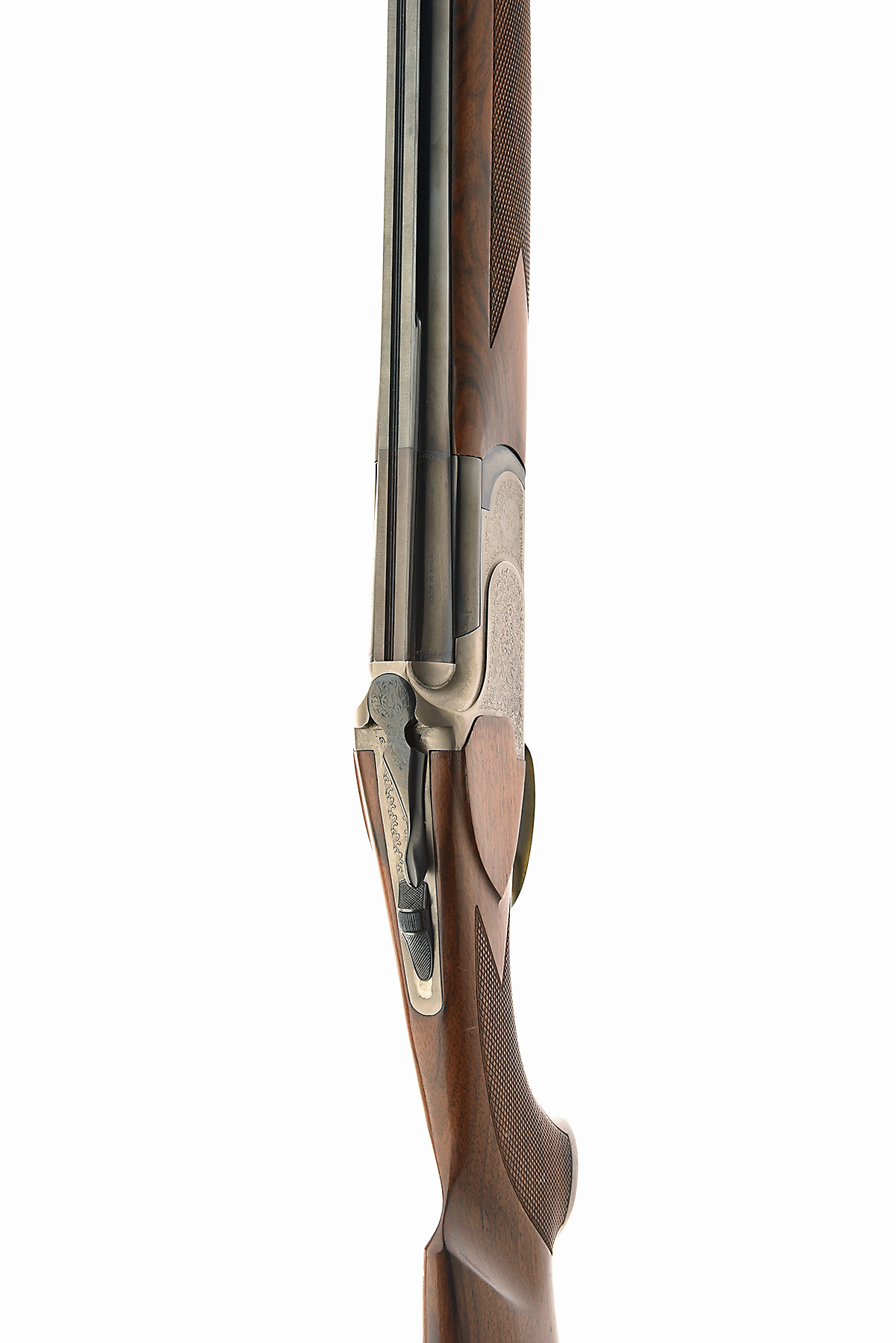 LANBER 12-BORE SINGLE-TRIGGER OVER AND UNDER EJECTOR, serial no. 06335, dated 2002, full Spanish code 13-03-06335-02-12-76, 29 1/2in. nitro barrels with ventilated mid-rib and 11mm ventilated matt top-rib, 3in. chambers, multichokes (no spares), hold-open toplever, manual safety with integral barrel selector switch, gold-washed single trigger, acanthus scroll engraving, 14 1/2in. pistolgrip stock including 3/4in. rubber recoil pad, weight 7lb. 13oz.