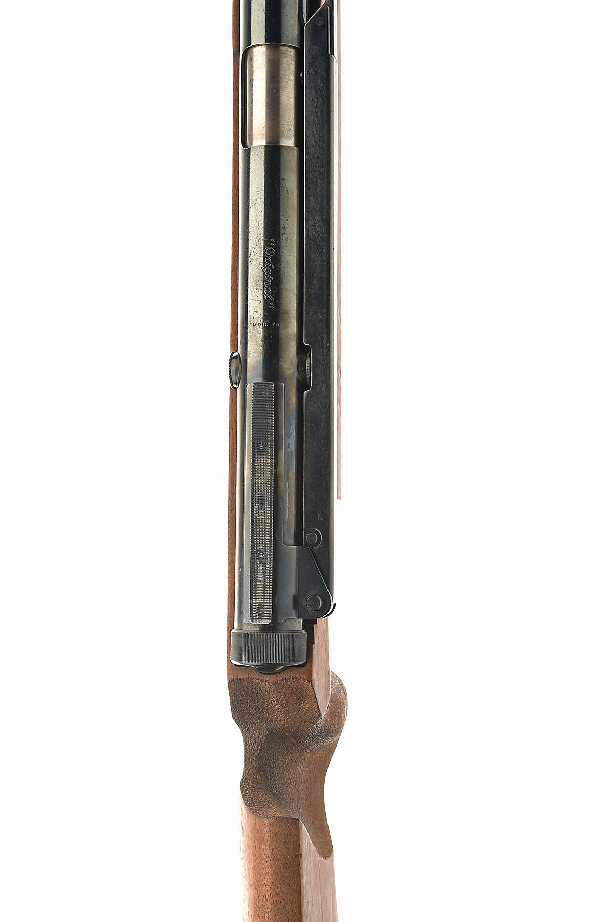 A .177 ORIGINAL MODEL 75 SIDE-LEVER RECOILLESS MATCH AIR-RIFLE, serial no. 023566, for 1980, with blued 18 3/4in. barrel (sights absent), blued air-chamber with sliding breech and anatomical right hand adjustable walnut half-stock with accessory rail, requires seals