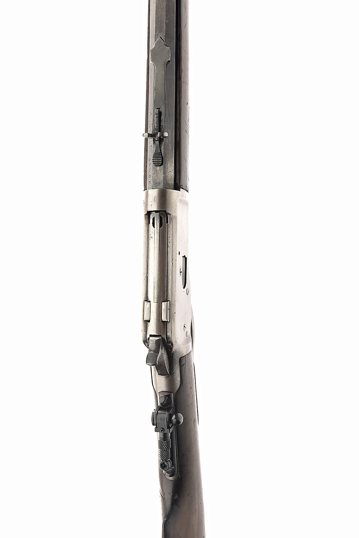 A .44-40 (WIN) WINCHESTER MODEL 1892 SPORTING SHORT-RIFLE, serial no. 678445, for 1912, with octagonal 20in. barrel signed by the maker, plain receiver fitted with a later peep-sight at wrist, walnut butt-stock with crescent heel-plate and plain fore-end