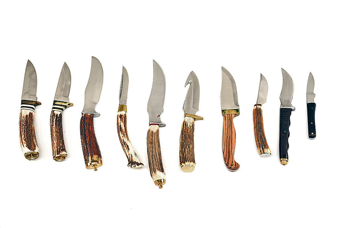 TEN ASSORTED SPORTING SHEATH KNIVES,