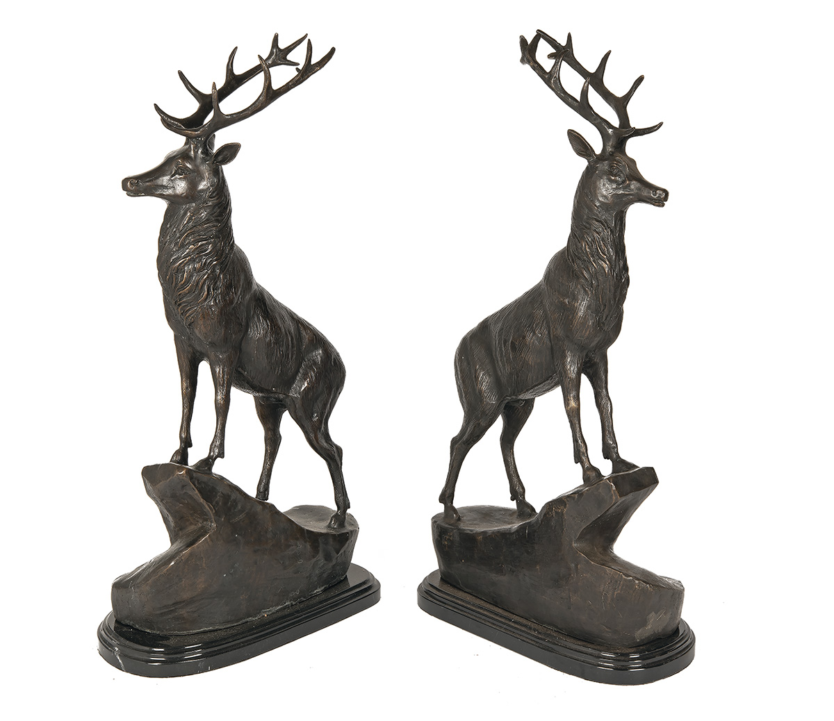 A PAIR OF BRONZE STAGS SIGNED T. MAIGNIERY,