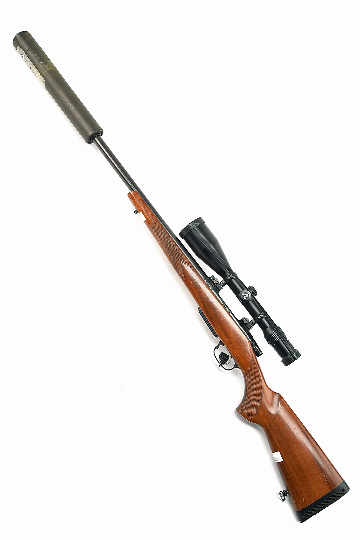 CZ .22-250 REM '550' BOLT-MAGAZINE SPORTING RIFLE, serial no. H2495, circa 2002, 29 1/4in. unsighted nitro barrel (including an 'AU T8' 12in. sound moderator), fitted with a Doctor 3-12x56 telescopic sight, manual safety, detachable magazine, figured pistolgrip stock with ventilated recoil pad, sling swivels + sound moderator