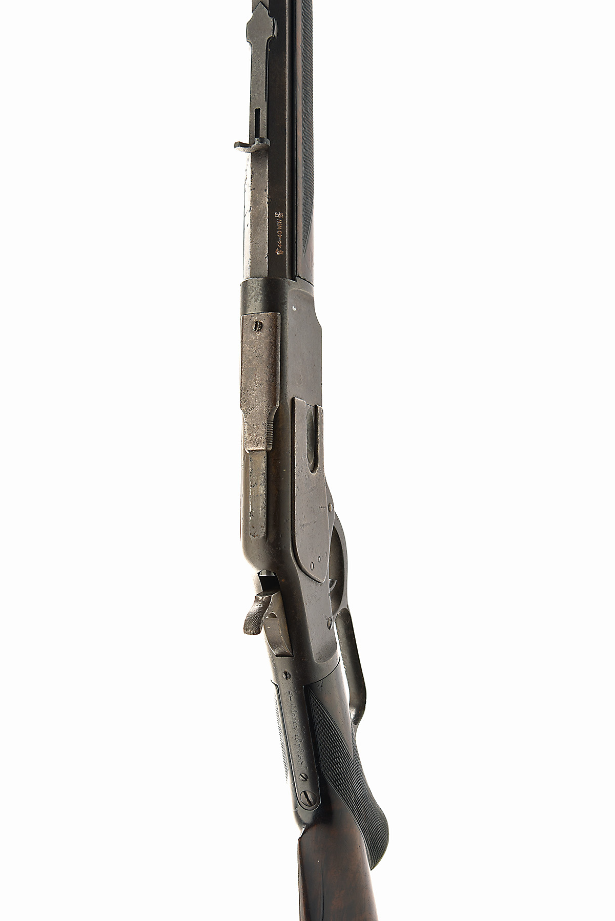 WINCHESTER REPEATING ARMS .44-40 WIN. 'MODEL 1873 SPECIAL ORDER' LEVER-ACTION REPEATING RIFLE, serial no. 195x95, serial number partially obscured, for 1886, 24in. nitro reproved octagonal barrel (in 2023), some external and internal pitting, dove-tailed blade fore-sight, open rear sight, the top flat engraved 'WINCHESTER REPEATING ARMS, NEW HAVEN, CT KINGS IMPROVEMENT PATENTED MARCH 29 1866, OCTOBER 16 1860', (faint), plain receiver with sliding dust-cover operating on internal rails, top tang marked 'MODEL 1873', some external pitting, chequered high-grade walnut pistolgrip stock, 12 3/4in. pull including iron crescent buttplate with central trap-door, chequered walnut fore-end, iron nose-cap, full-length tubular magazine, weight 8lb. 13oz.