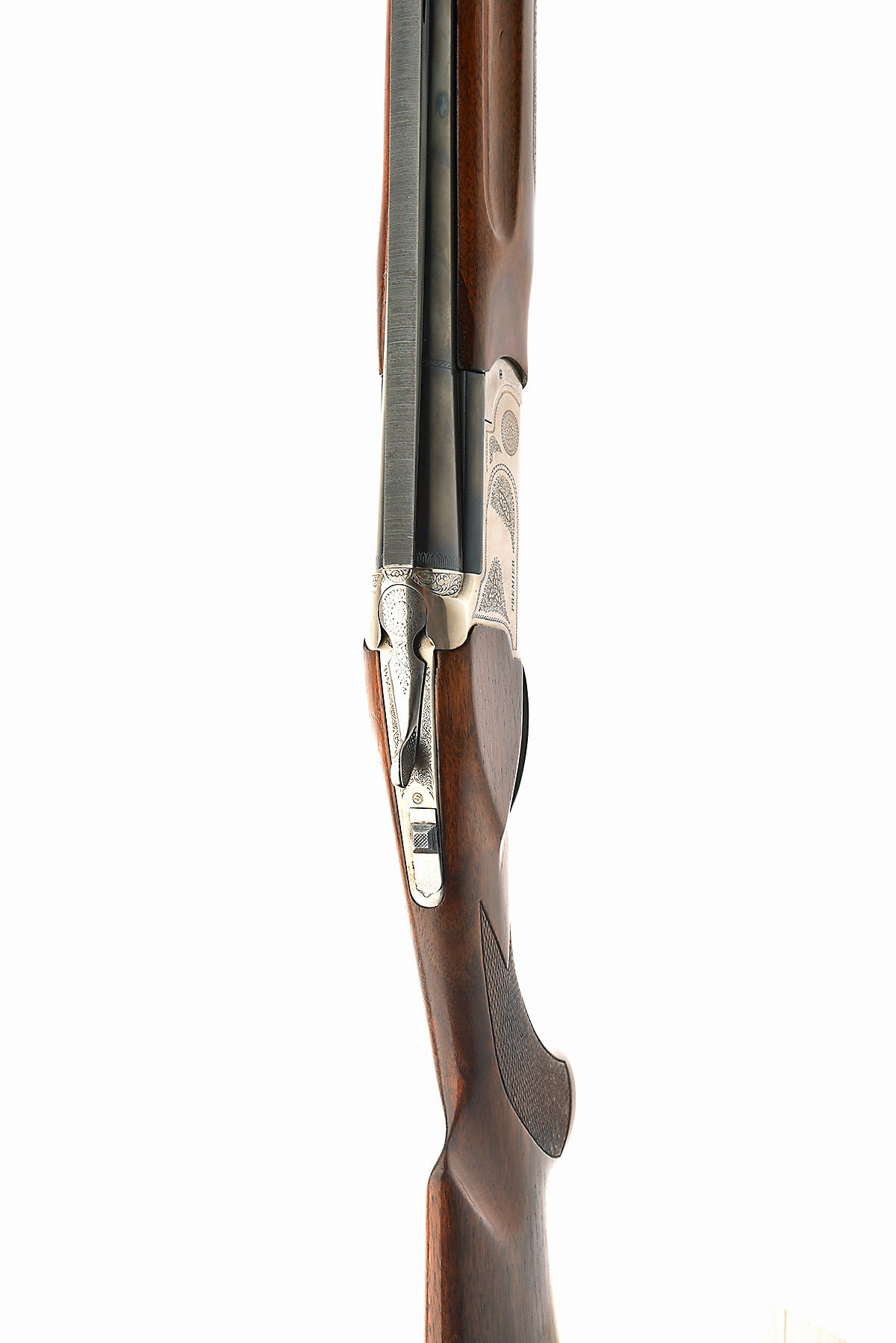 ARMI BETTINSOLI 12-BORE (3IN.) 'PREMIER' SINGLE-TRIGGER OVER AND UNDER EJECTOR, serial no. 77439, for 1989, 26 3/4in. nitro barrels with 10mm ventilated matt top-rib, ventilated mid-rib, 3in. chambers, bored approx. retro bore open in both, hold-open toplever, manual safety with integral barrel-selector switch, gold-washed trigger, border, acanthus scroll and floral bouquet engraving, bright finish, 14 1/2in. pistolgrip stock including buttplate, in a black Buffalo river canvas slip