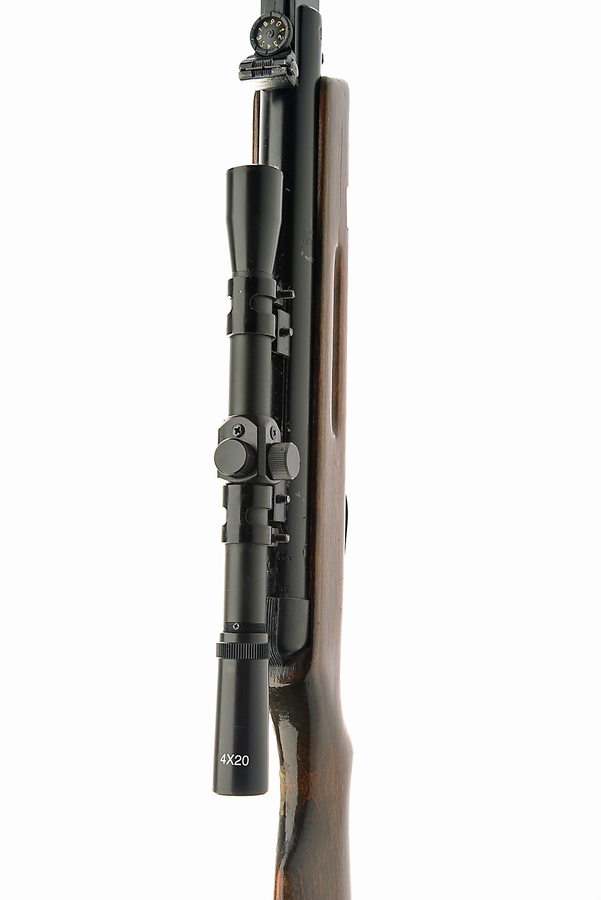 TWO .177 EL GAMO BREAK-BARREL AIR-RIFLES, MODELS 'APACHE' & 'SNIPER', serial no's. 301576 & 421153, the first with sighted 16in. barrel, plain air-chamber and beech half-stock, the second similar but with 17 3/4in. barrel and metalwork painted black, both fitted with 4x20 telescopic sights