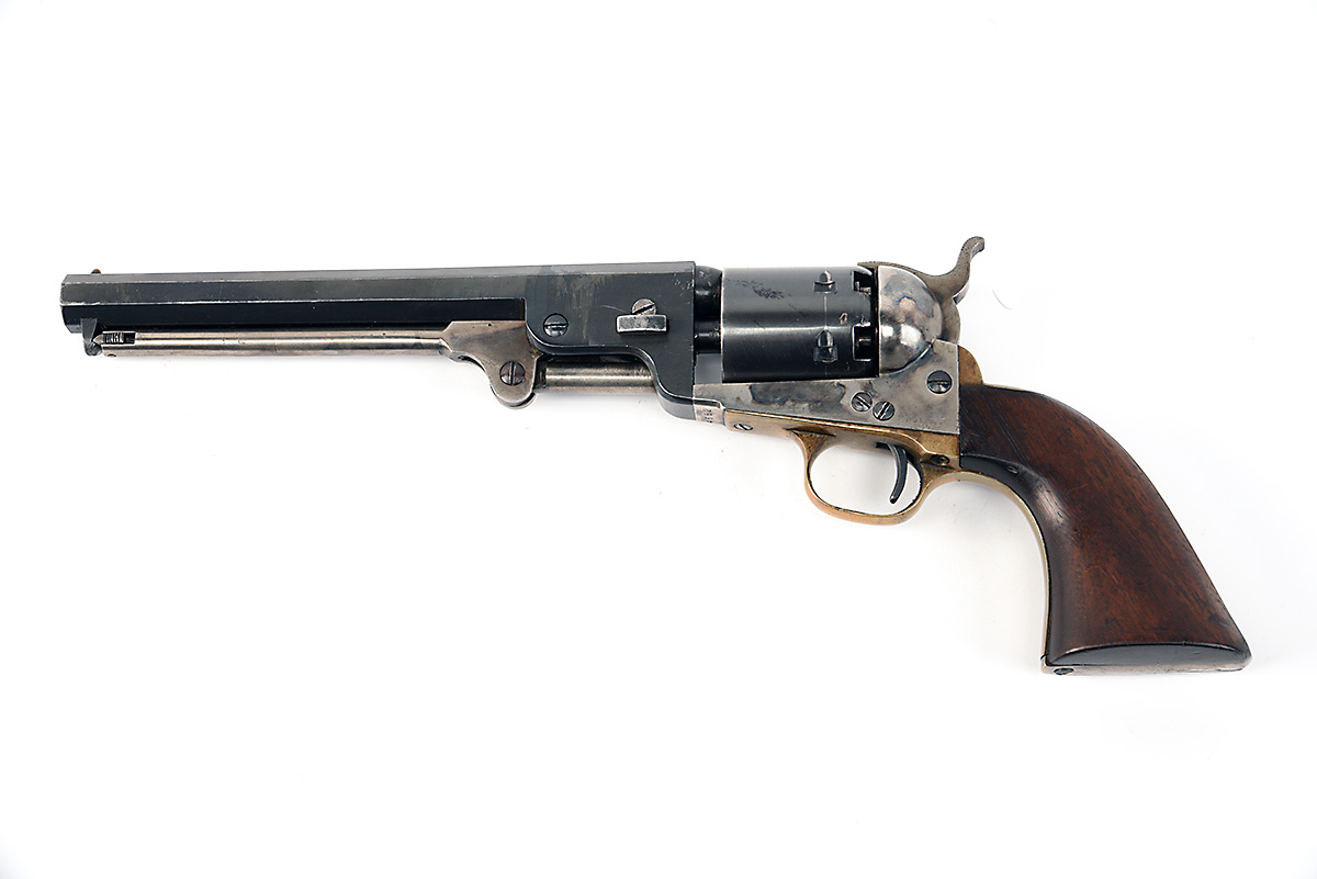 A REPRODUCTION ITALIAN .36 PERCUSSION COLT 1851 NAVY-TYPE REVOLVER, serial no. 4662, WITH MOULD,