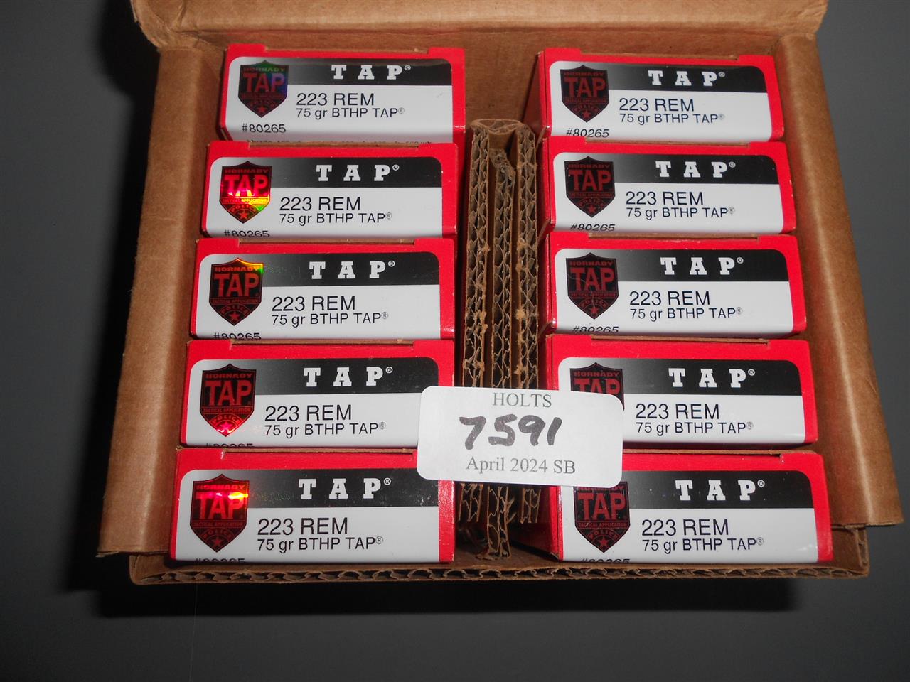 200 ROUNDS .223 REM AMMUNITION BY HORNADY TAP, 75grn. BTHP,