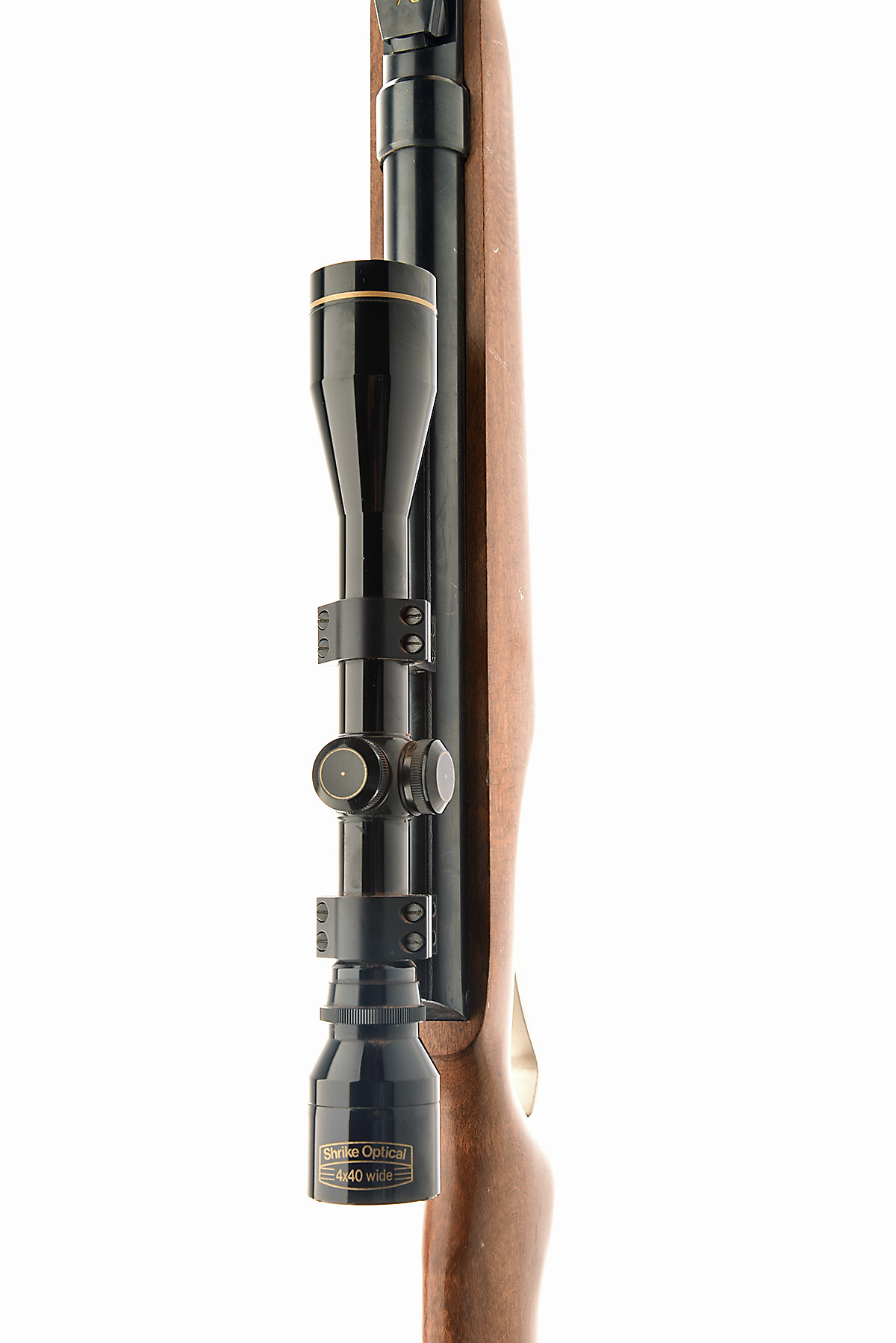 A SCARCE .177 UNDER-LEVER RUTTEN WINSTAR MACH-1 AIR-RIFLE, serial no. RO1409, with blued 20 1/2in. barrel including sound-moderator, flip-up breech, blued air-chamber, beech half-stock and alloy reverse hinged cocking lever also forming the trigger guard, some marks but generally collector's external condition and fitted with a Shrike Optical 4x40 telescopic sight