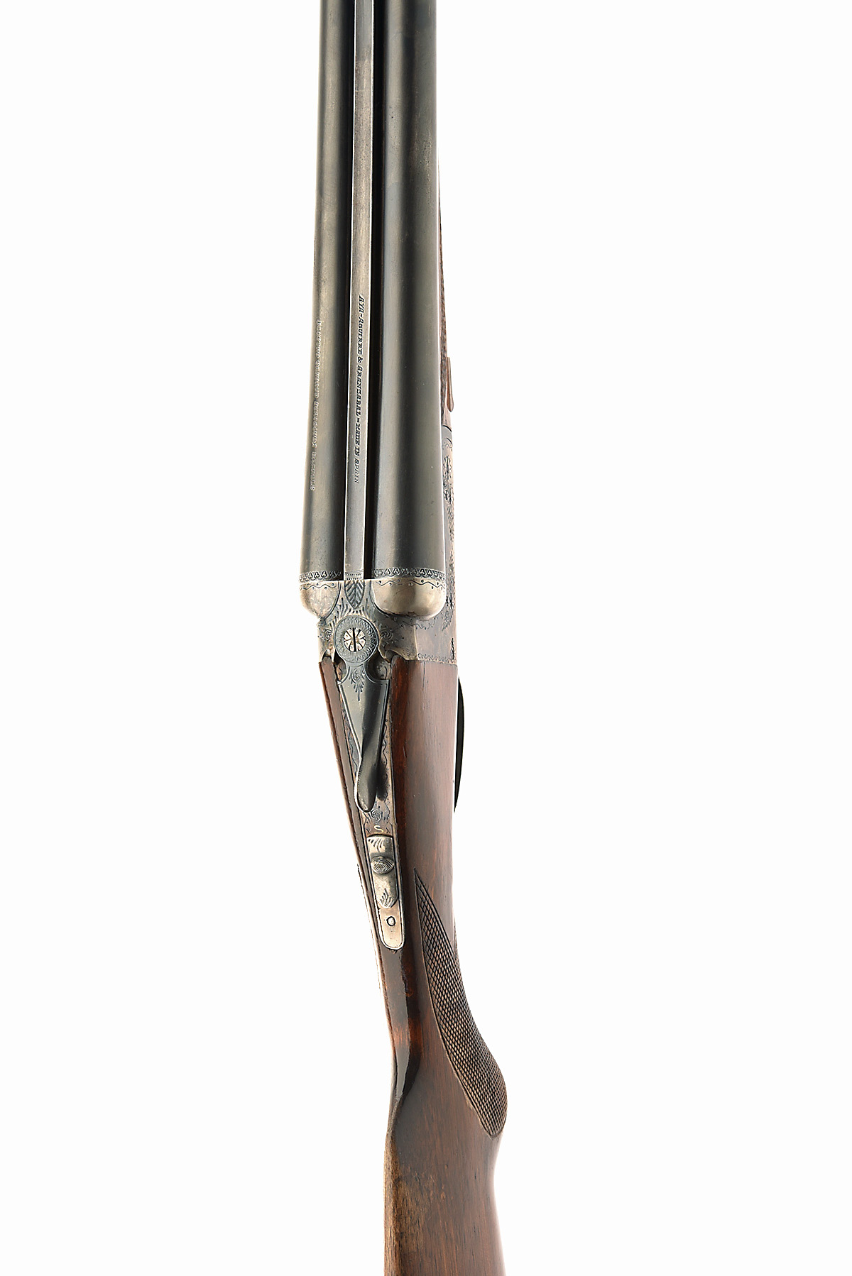 AYA 12-BORE 'NO.4 MODEL' BOXLOCK EJECTOR, serial no. 448301, dated 1974, 28in. nitro barrels, 2 3/4in. chambers, bored approx. imp. cyl. and 1/4 choke, removable striker discs, automatic safety (at fault rear trigger) with gold-inlaid 'S' detail, border and partial scroll engraving, retaining much original colour-hardening and finish, 15 1/2in. semi-pistolgrip stock including 1in. ventilated rubber recoil pad