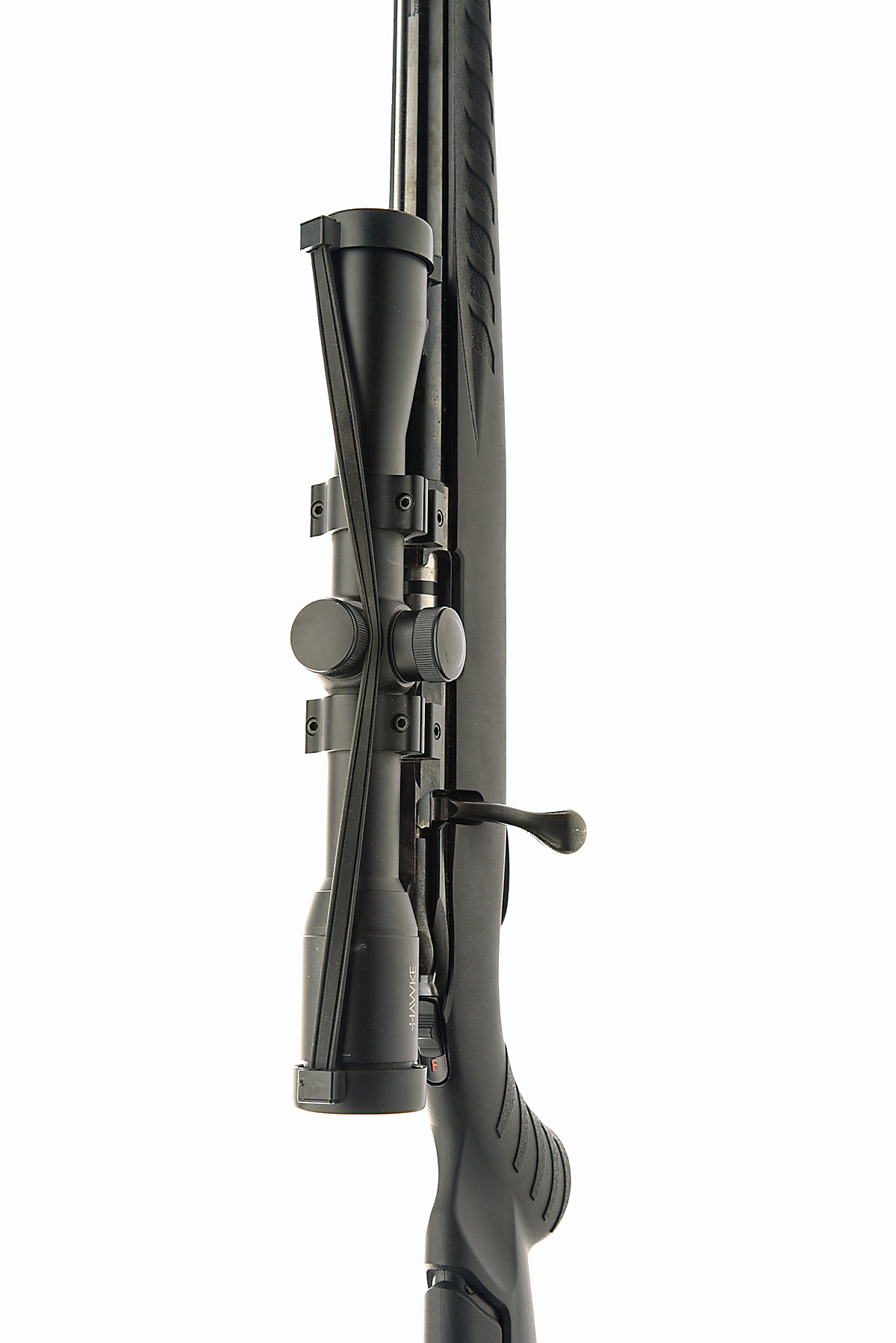 RUGER .22 L.R. 'AMERICAN' BOLT-MAGAZINE SPORTING RIFLE, serial no. 834-49872, dated 2018, 18 1/4in. nitro barrel, threaded for sound moderator, illuminated bead fore-sight, folding leaf rear-sight, fitted with a Hawke 4x32 telescopic sight, manual tang safety, detachable magazine missing, synthetic pistolgrip stock, sling eyes