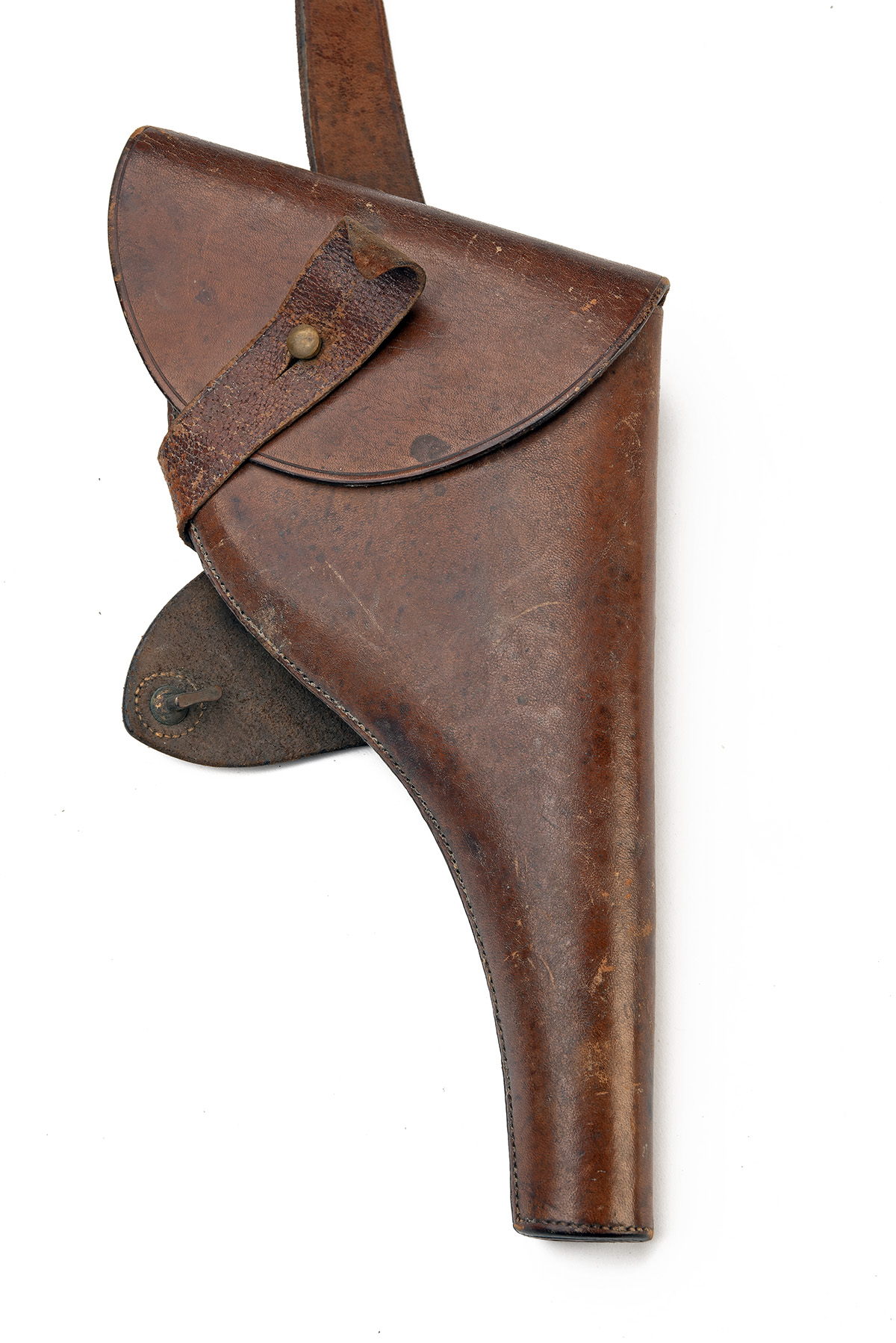 A RARE EARLY SAM BROWNE RIG, circa 1900, belt with domed studs and circular suspension rings dates this to pre 1907, with a sword frog and later associated shoulder-strap and revolver holster, no apparent maker marks
