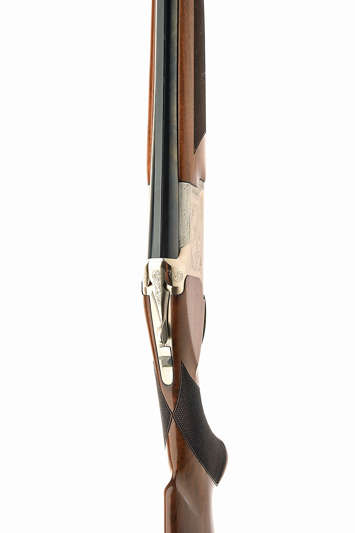 BROWNING 12-BORE 'GRADE 425' SINGLE-TRIGGER OVER AND UNDER EJECTOR, serial no. 38975MZ, dated 2001, 26in. nitro barrels with 6mm ventilated matt top-rib, 2 3/4in. chambers, bored approx. imp. cyl. and 1/4 choke, hold-open toplever, automatic safety with integral barrel selector switch, gold-washed single trigger, acanthus-bordered game scene vignettes, silver finish, 14 1/4in. pistolgrip stock including 7/8in. rubber recoil pad, weight 6lb. 7oz., in a slip