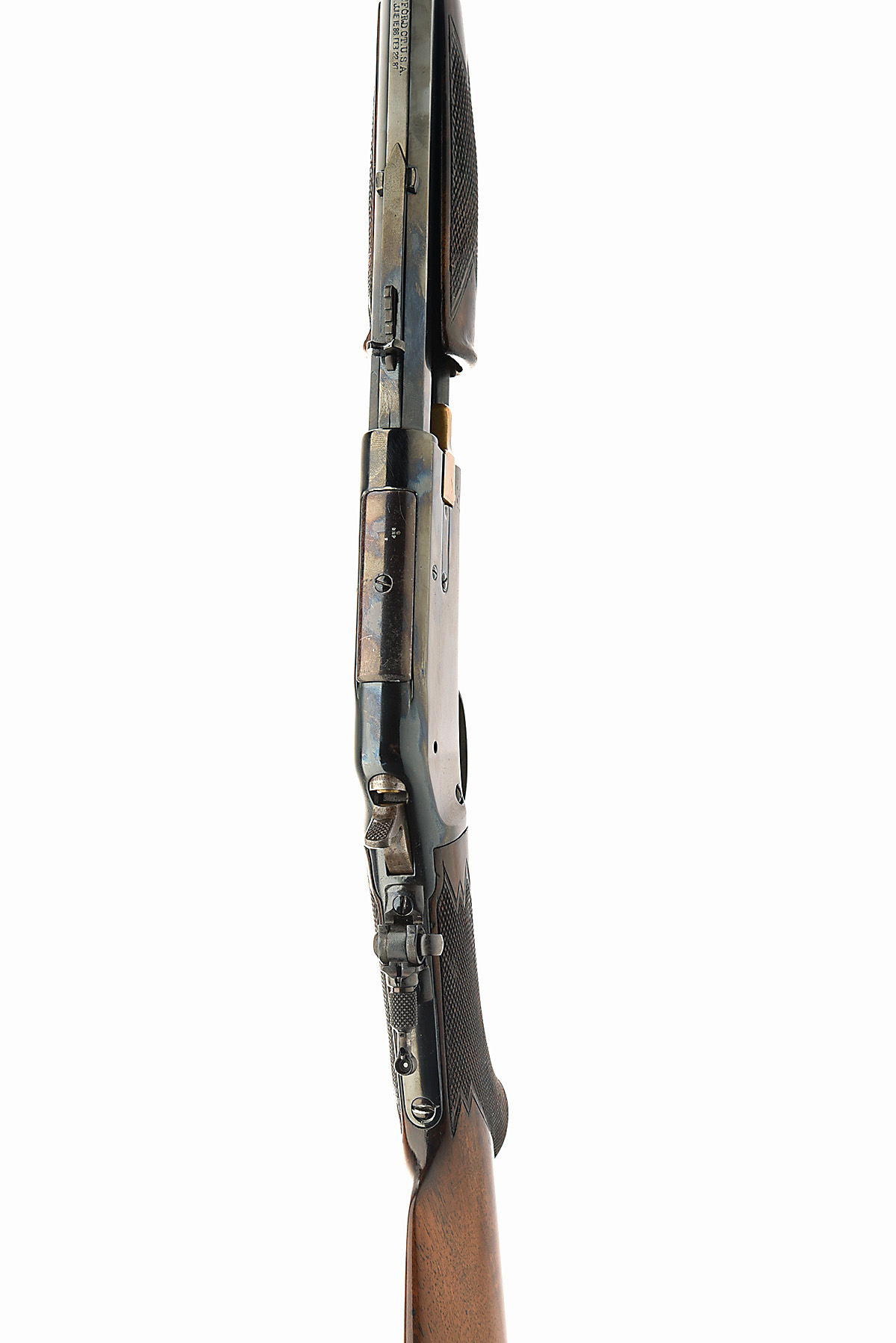 COLT .22 SHORT 'LIGHTNING' PUMP-ACTION SPORTING RIFLE, serial no. 46332, circa 1900, 24in. octagonal nitro barrel, folding ring fore-sight, open rear-sight, engraved 'COLT'S PT.F.A.MFG.CO.HARTFORD.CT.U.S.A. PATENTED MAY 29. SEPT. 18. 83. MAY. 26. 85. JUNE 15. 86. FEB. 22. 87.', half-cock safety, folding tang peep-sight, tubular magazine, figured pistolgrip stock, 13 1/4in. pull including trademark buttplate, weight 5lb. 8oz.