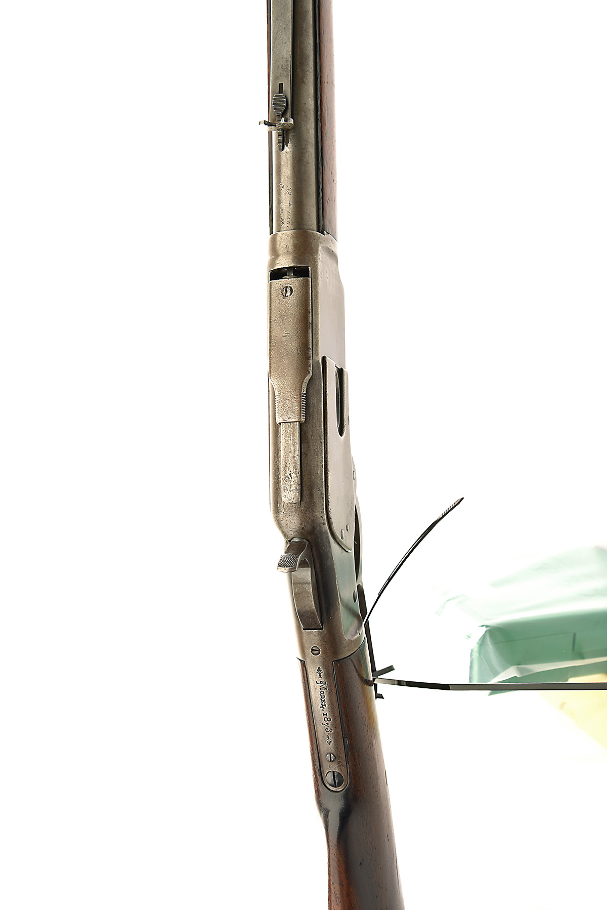 WINCHESTER REPEATING ARMS .32-20 WIN. 'MODEL 1873' LEVER-ACTION REPEATING RIFLE, serial no. 126099A, for 1883, 24in. re-lined non-tapered round nitro barrel (in 2000), dove-tailed blade fore-sight, adjustable buckhorn rear sight, the top roll-stamped 'WINCHESTER REPEATING ARMS NEW HAVEN CT' over 'KINGS IMPROVEMENT' and patent dates to 1860, flat sided action, plain dust cover, central hammer, the top-tang marked 'MODEL 1873.', retaining very slight traces of finish, 12 1/2in. walnut butt stock including crescent heel-plate, walnut fore-end (with some losses to left side leading edge), with iron nose-cap and full-length tubular magazine, weight 8lb. 5oz., complete with a set of RCBS reloading dies and 50 fired cases + dies and cases
