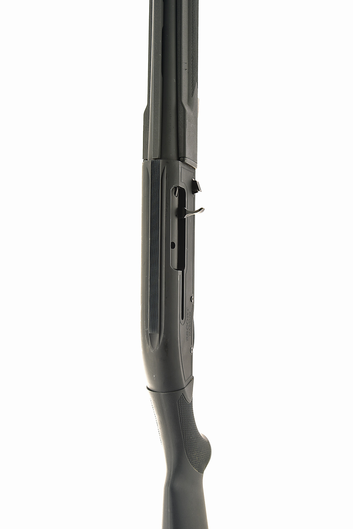 HATSAN 12-BORE (3IN.) 'ESCORT MAGNUM' SEMI-AUTO SHOTGUN, serial no. 80964, for 2006, restricted magazine, 28in. nitro barrel (high performance steel shot), with 8mm ventilated matt rib, 3in. chamber, multichoke (no spares), manual push-button safety, magazine cut-off switch, 13 3/4in. synthetic pistolgrip stock including rubber recoil pad, the whole in matt black finish,