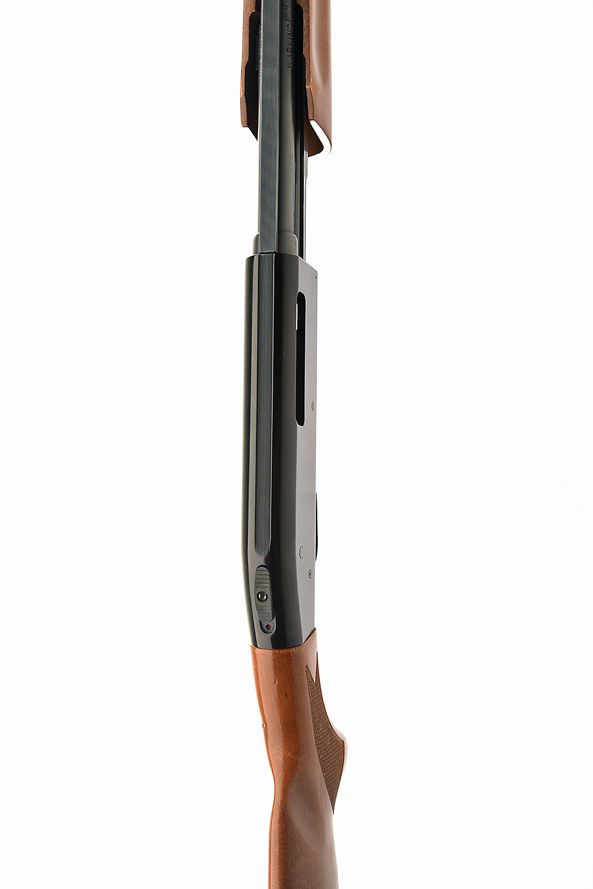 AN F.A.C.-RATED MOSSBERG .410 (3IN.) 'MODEL 500E' MODERATED PUMP-ACTION SHOTGUN, serial no. T247165, circa 2009, 32in. nitro barrel including sound moderator, 3in. chamber, manual top-tang safety, gold-washed trigger, plain blacked action, 14in. pistolgrip stock including 7/8in. ventilated rubber recoil pad