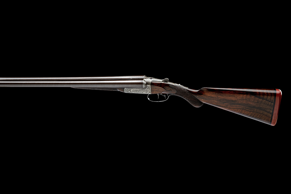 circa 1880, 30in. nitro reproved damascus barrels (in 1976), rib engraved 'CHAS OSBORNE & CO. 7. WHITEHALL PLACE. LONDON.', 2 1/2in. chambers, bored approx. true cyl. and 3/4 choke, treble-grip action, automatic safety with gold-inlaid 'SAFE' detail, border and acanthus scroll engraving interspersed with floral and foliate motifs, retaining traces of original colour-hardening and finish, 14 3/4in. figured semi-pistolgrip stock including 3/4in. rubber recoil pad, weight 6lb. 9oz.