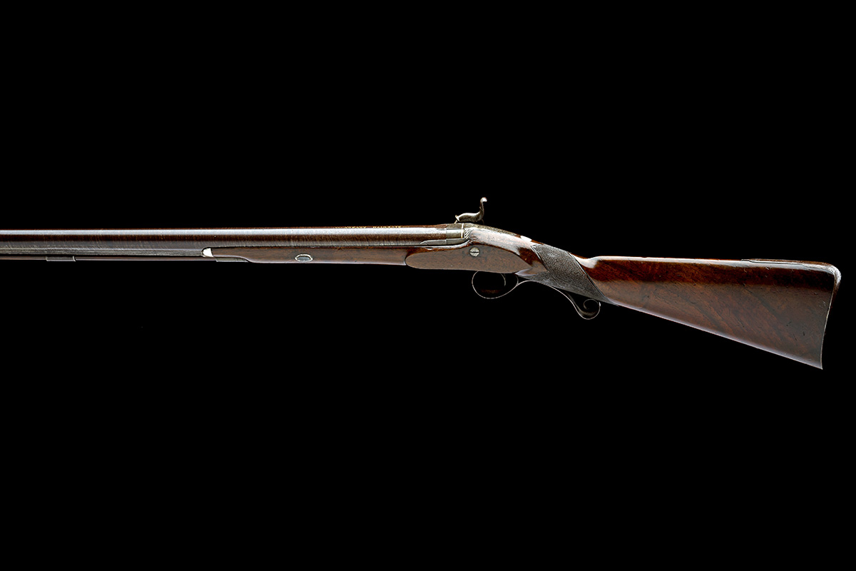 A 12-BORE PERCUSSION SINGLE-BARRELLED SPORTING GUN SIGNED BECKWITH, LONDON, serial no. 854,