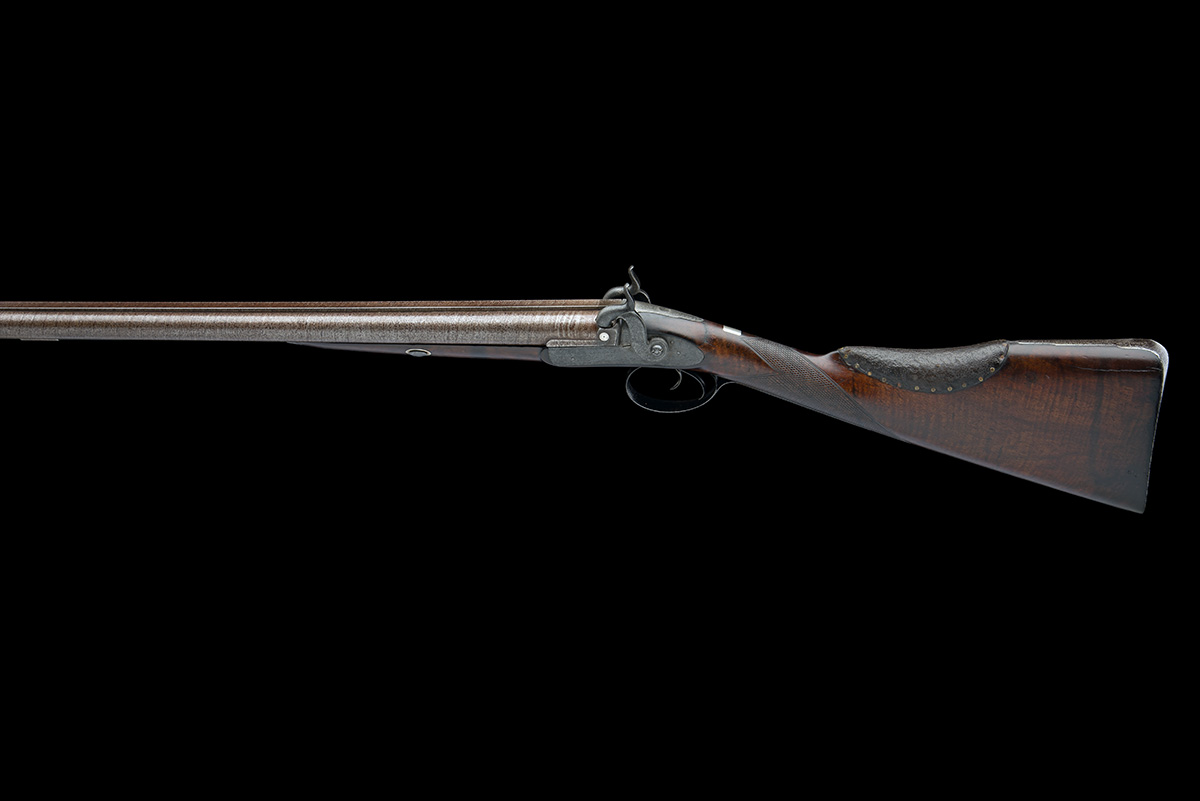A CASED 12-BORE PERCUSSION DOUBLE-BARRELLED SPORTING GUN, serial no. 11019,