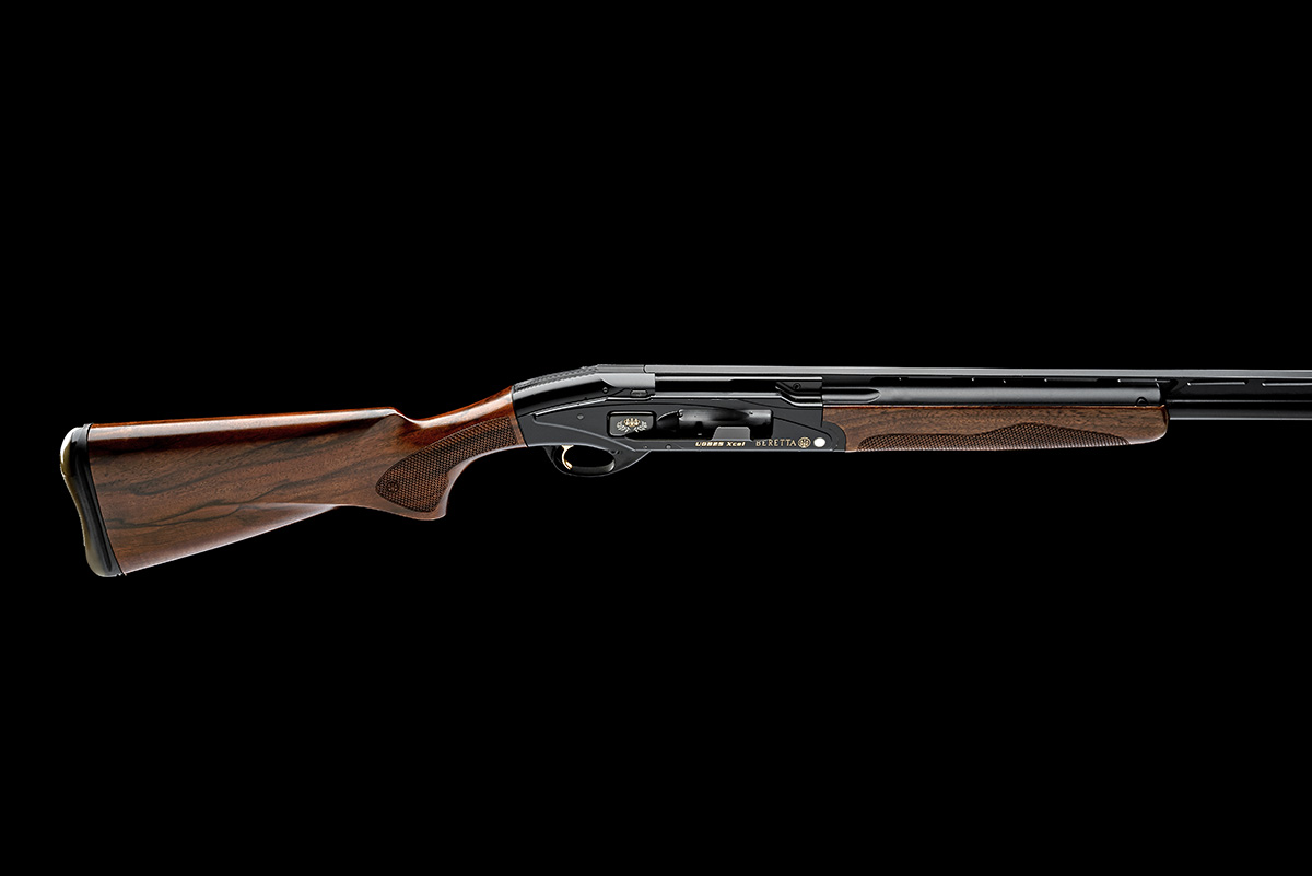 for 2009, 30in. nitro barrel with 12mm raised ventilated matt rib, 2 3/4in. chamber, multichoke (no spares), manual push-button safety, gold-washed trigger, sidelever opening, brushed black and gold finish, 14 1/2in. figured pistolgrip stock including rubber recoil pad, weight 8lb. 6oz.