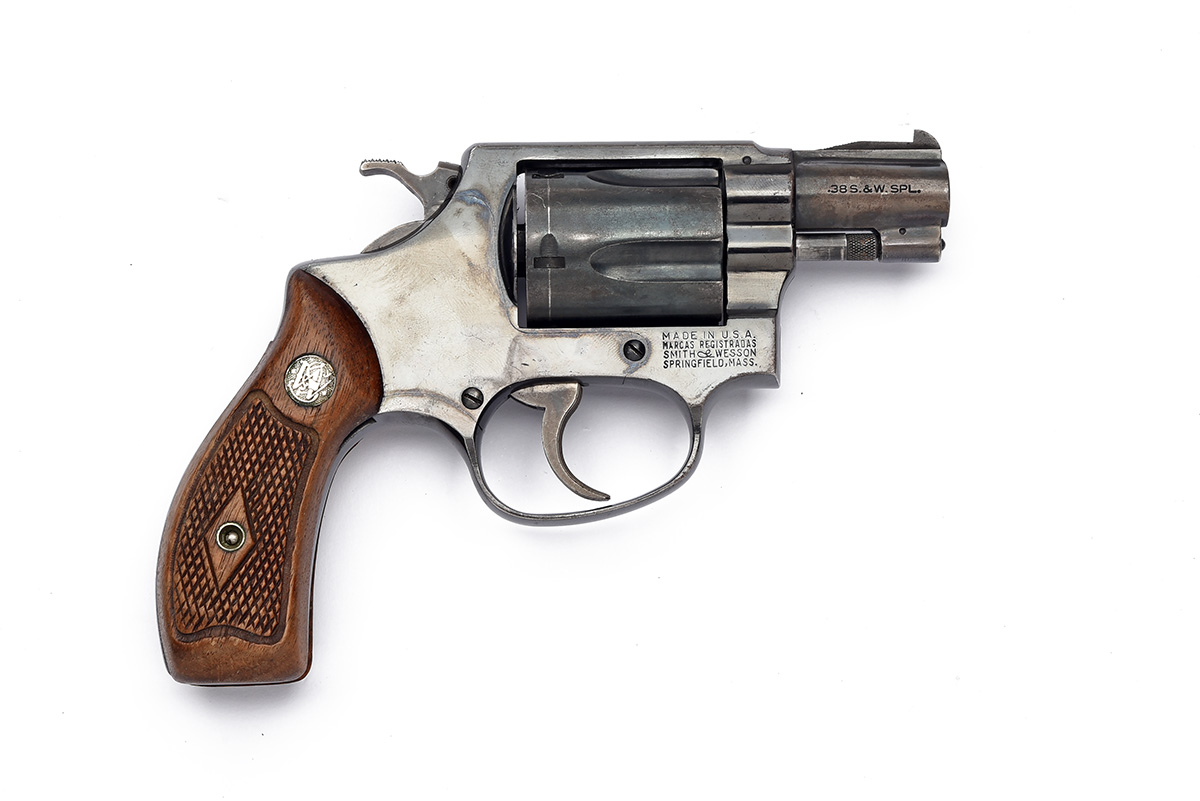 A SMITH & WESSON .38 (SPL) MODEL 36 POCKET-REVOLVER, serial no. 440903, with sighted 1 7/8in. barrel, blued frame with swing-out five-shot fluted cylinder and chequered wood grips