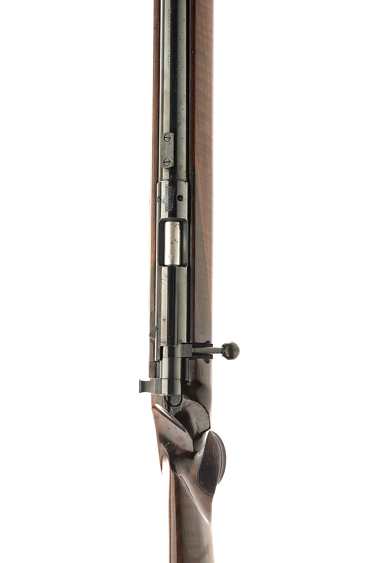 J.G. ANSCHUTZ .22 L.R. 'MODEL 54 SUPER MATCH' BOLT-ACTION TARGET RIFLE, serial no. 22385, circa 1970, 28 1/4in. nitro barrel, sights missing, manual flag safety, hand-stop, target stock
