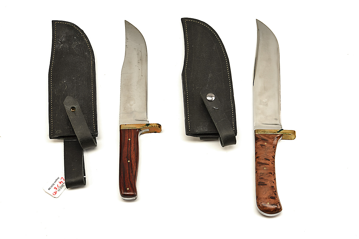 TWO LARGE HARRY BODEN BOWIE KNIVES IN LEATHER SHEATHS, 2