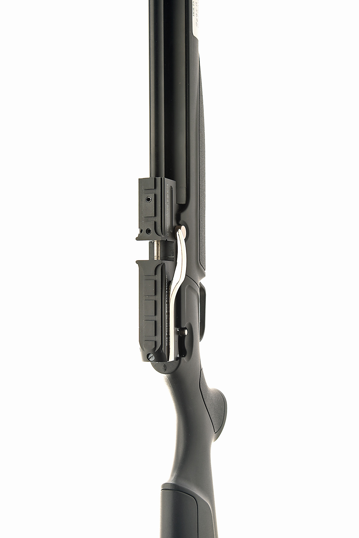 A BOXED FAC-RATED .22 KRAL ARMS PUNCHER MAXI S PRE-CHARGED PNEUMATIC AIR-RIFLE, serial no. 181025 10955, with blued 22in. barrel, machined alloy receiver with detachable magazine, side-lever cocking, power regulator, black synthetic half-stock and under-barrel air reservoir with gauge, in its maker's card carton with spare magazines, appearing little used (tested)