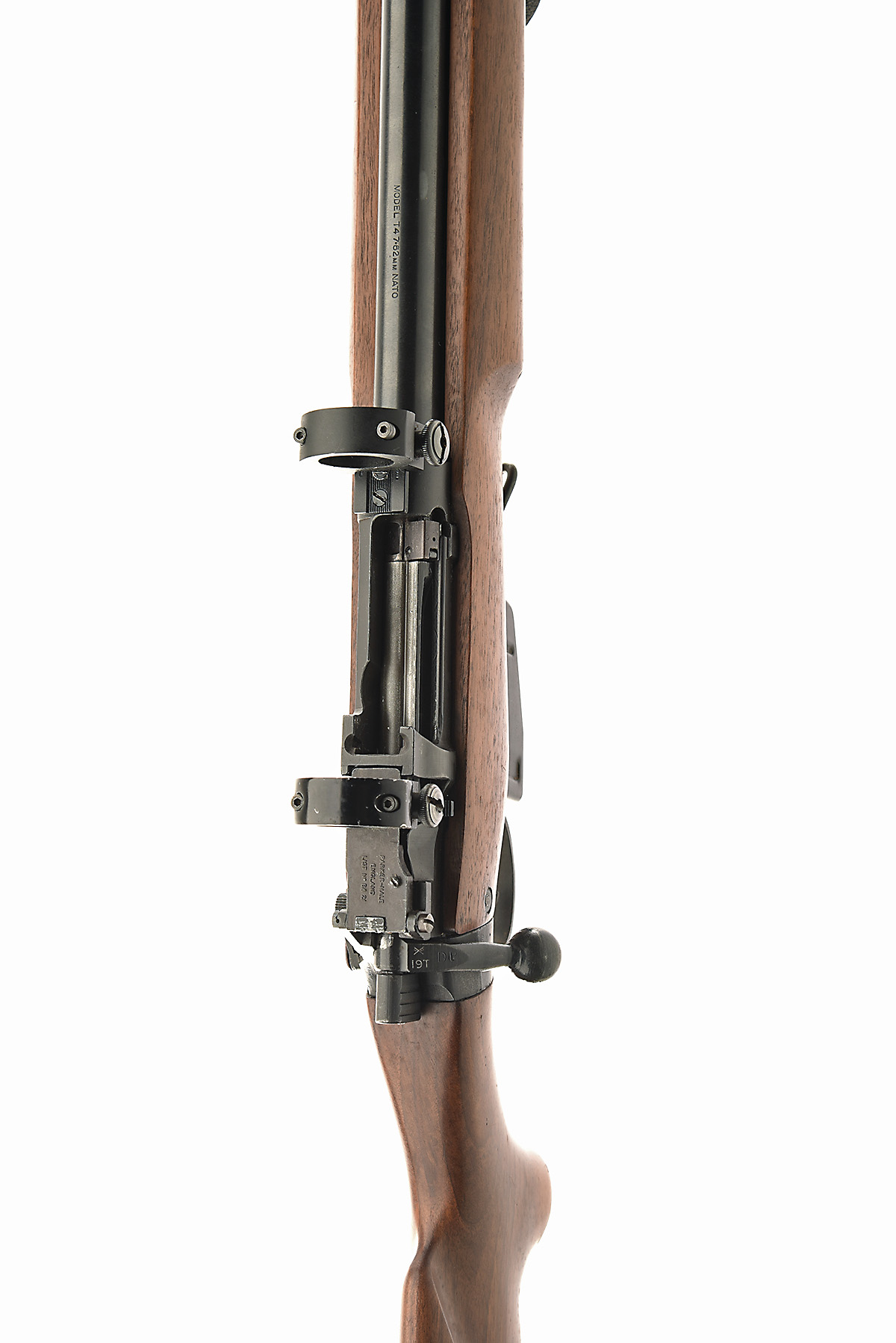 ENFIELD 7.62X51mm 'MODEL T4' BOLT-MAGAZINE TARGET RIFLE, serial no. PF260065, circa 1945, 25 3/4in. unsighted nitro barrel, fitted with 1in. scope rings, manual safety, detachable magazine, pistolgrip stock, recoil pad and cheekpiece