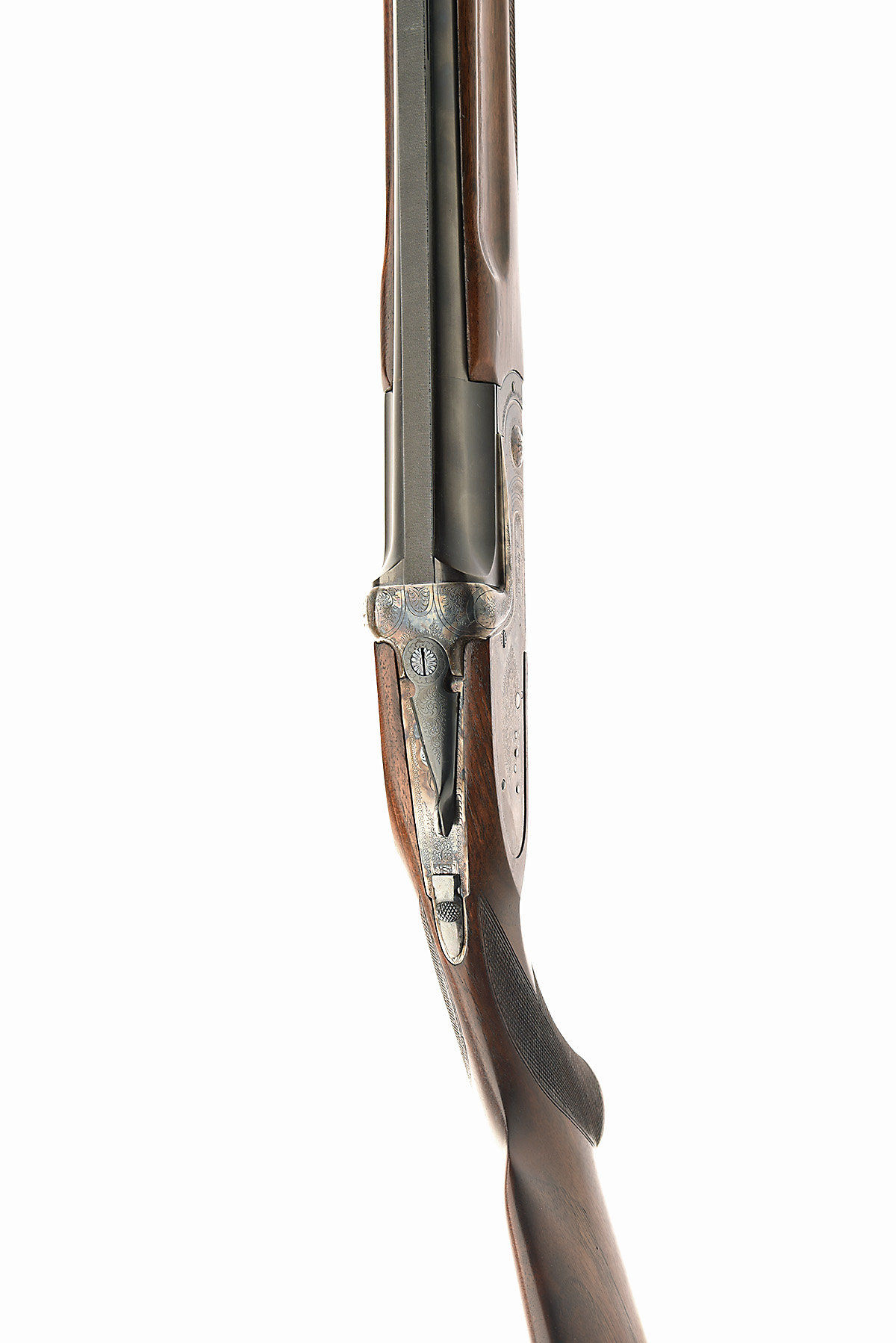 extra 26in. nitro barrels with 7mm ventilated matt top-rib, 2 3/4in. chambers, bored approx. true cyl. in both, hold-open toplever, automatic safety with engraved 'S' detail, bolstered action, border, acanthus scroll and floral bouquet engraving, retaining much original colour-hardening and finish, 14 1/4in. pistolgrip stock cast off towards central vision, semi-beavertail fore-end, weight 8lb. 4oz. (30in.) & 7lb. 5oz. (26in.), in a Liddersdale canvas slip