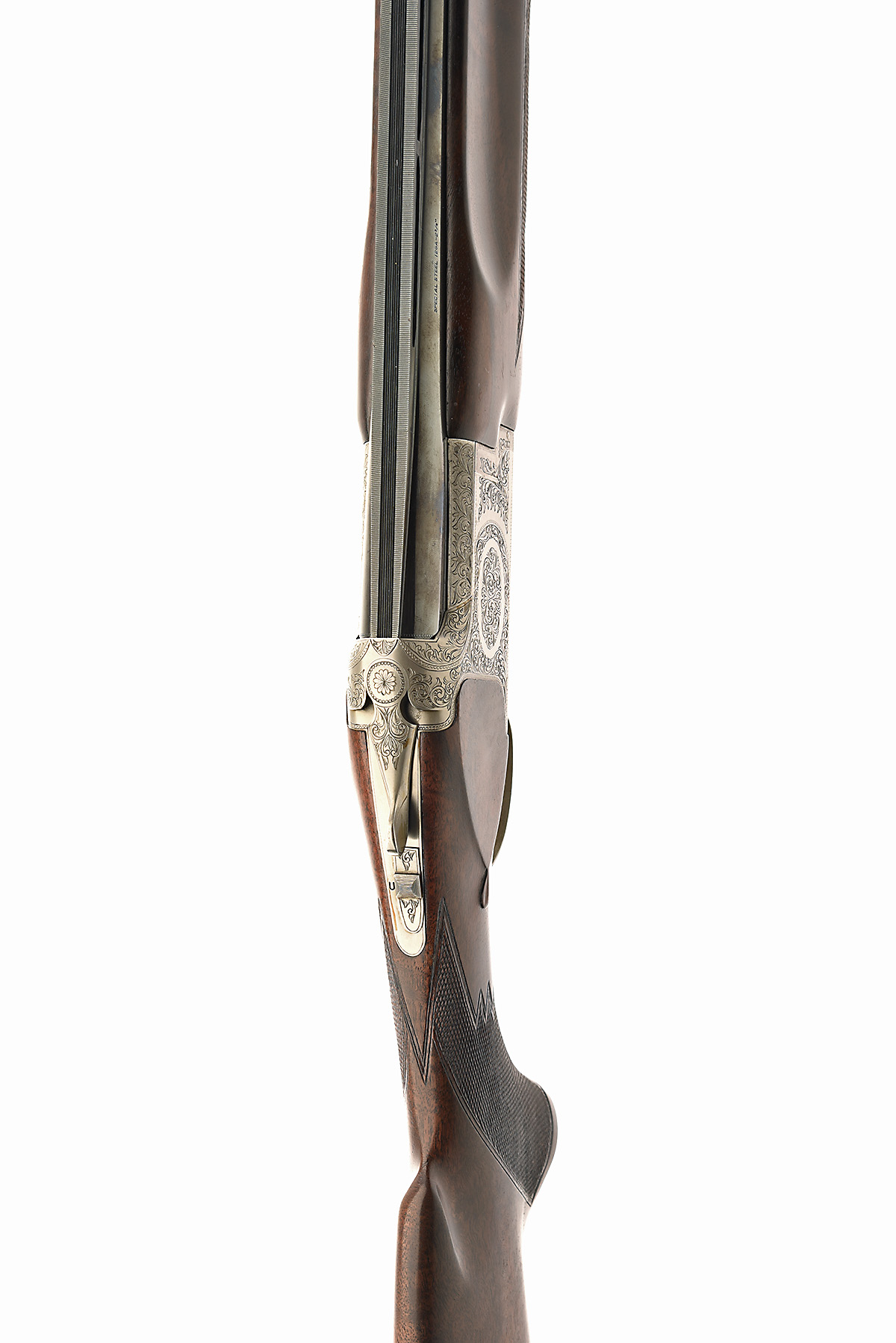 MIROKU FIREARMS MFG. CO. 12-BORE '3800 GRADE IV' SINGLE-TRIGGER OVER AND UNDER EJECTOR, serial no. 38098PYTG4, circa 1985, 30in. nitro barrels with 13mm ventilated matt top-rib, 2 3/4in. chambers, bored approx. 1/2 and 3/4 choke, hold-open toplever, manual safety with integral barrel selector switch, beaded border and acanthus scroll engraving, 14 1/4in. figures pistolgrip stock with raised comb, including 7/8in. ventilated rubber recoil pad, weight 7lb. 15oz.