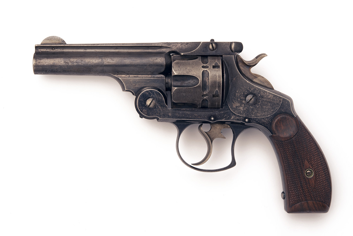 frame manufactured pre 1899, with blued 4in. barrel, raised sighting rib stamped with makers details and patent dates to 1880, crescent fore-sight, notch rear-sight, blued fluted automatic ejection cylinder, blued break-open frame, colour hardened trigger and hammer, chequered walnut grips, strong amount of original finish remaining, with certificate of proof