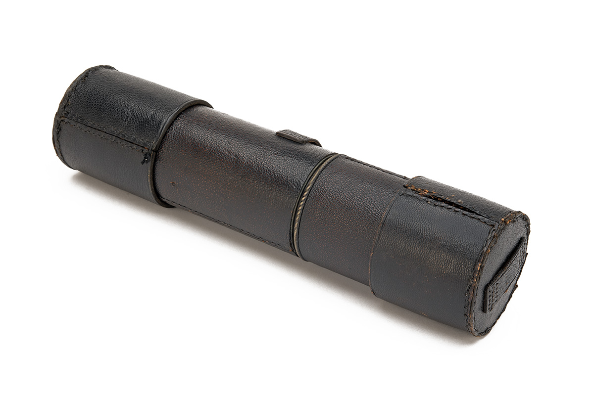 A FRENCH 'RIFLE RANGE' 33-POWER FOUR-DRAW TELESCOPE SIGNED E. VION, PARIS, with leather covered body and black lacquered brass construction, complete with leather dust-covers, optically clear, untested